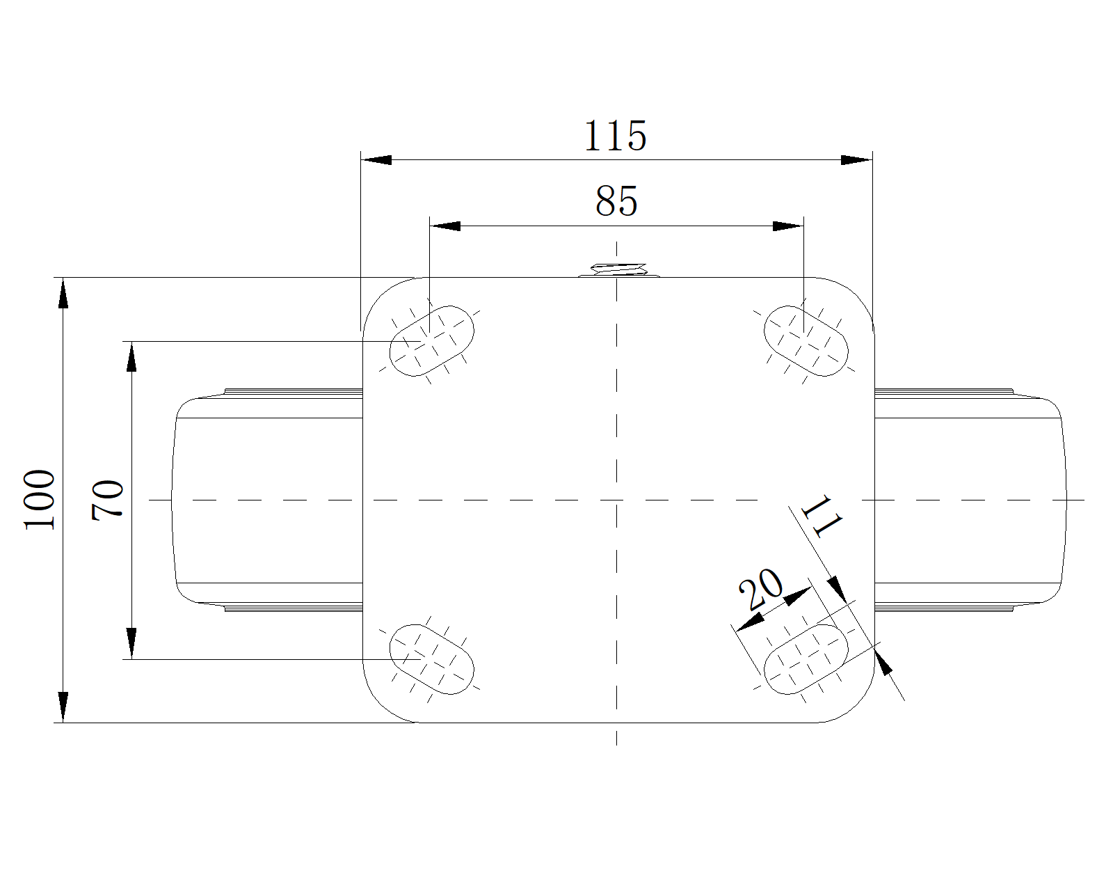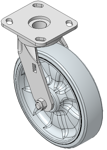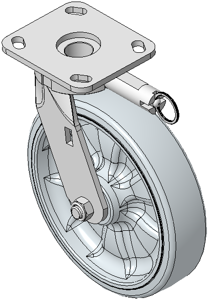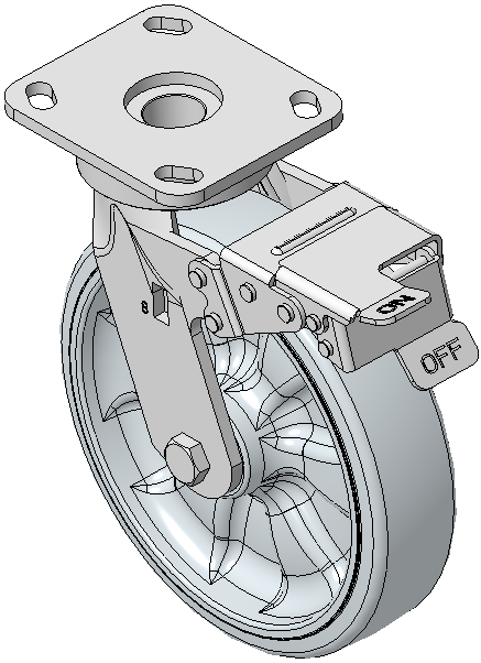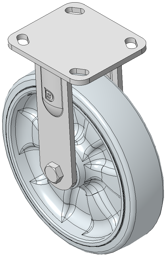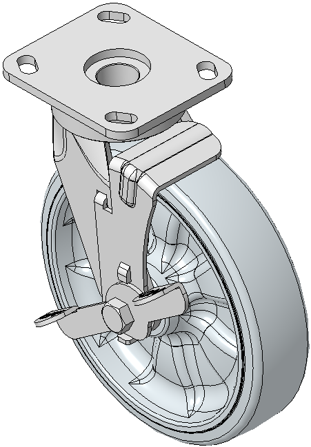 | Rigid castor, Welded Caster Fork Extended control lever surface, Top Plate Mounting Type, Hole spacing 85x70 Cast Iron Wheel Center, High Quality Polyurethane wheel tread, pearlescent light gray Bearing - Ball Bearing |