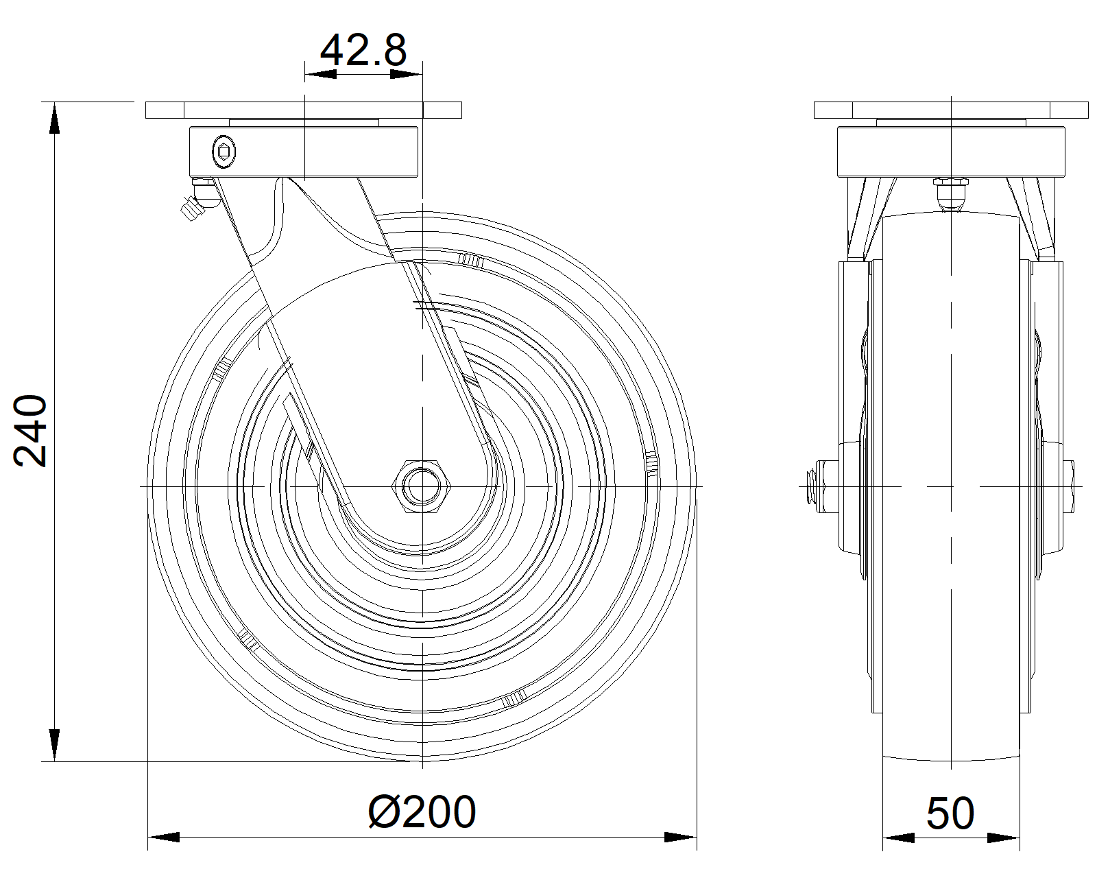 | QPU (brown round) Wheel Diameter x Wheel Width 200 x 50mm |