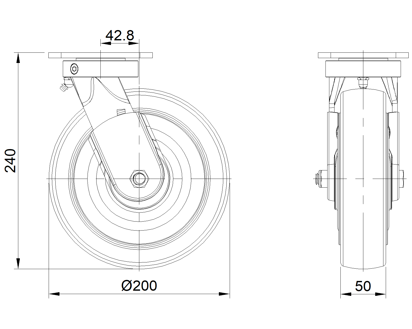 | Wheel tread: Thermoplastic (PA6) Wheel tread: Thermoplastic (PA6) Drawings are for reference only and may differ from the product |