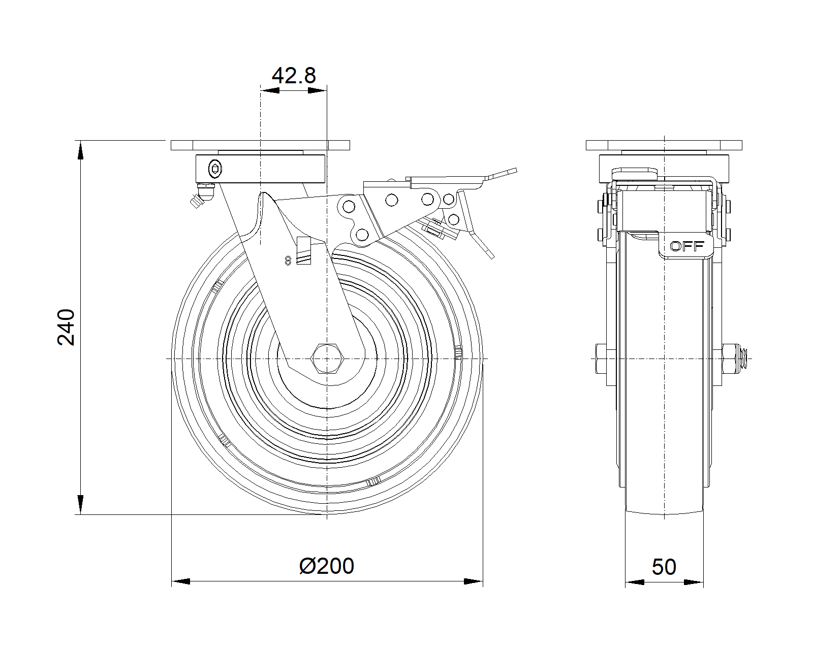 | QPU (brown round) Wheel Diameter x Wheel Width 200 x 50mm |