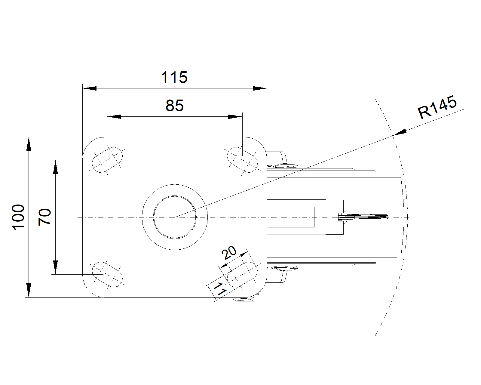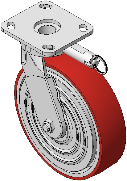 | Casters with directional brakes and Locking system, Welded Caster Fork Zine-Plated, Mounting Type - Top Plate, 85x70 Bolt Hole Spacing Cast Iron Wheel Center, High Quality Polyurethane tread, Cast Iron red Bearing—Ball Bearing with special anti-wrap caps |