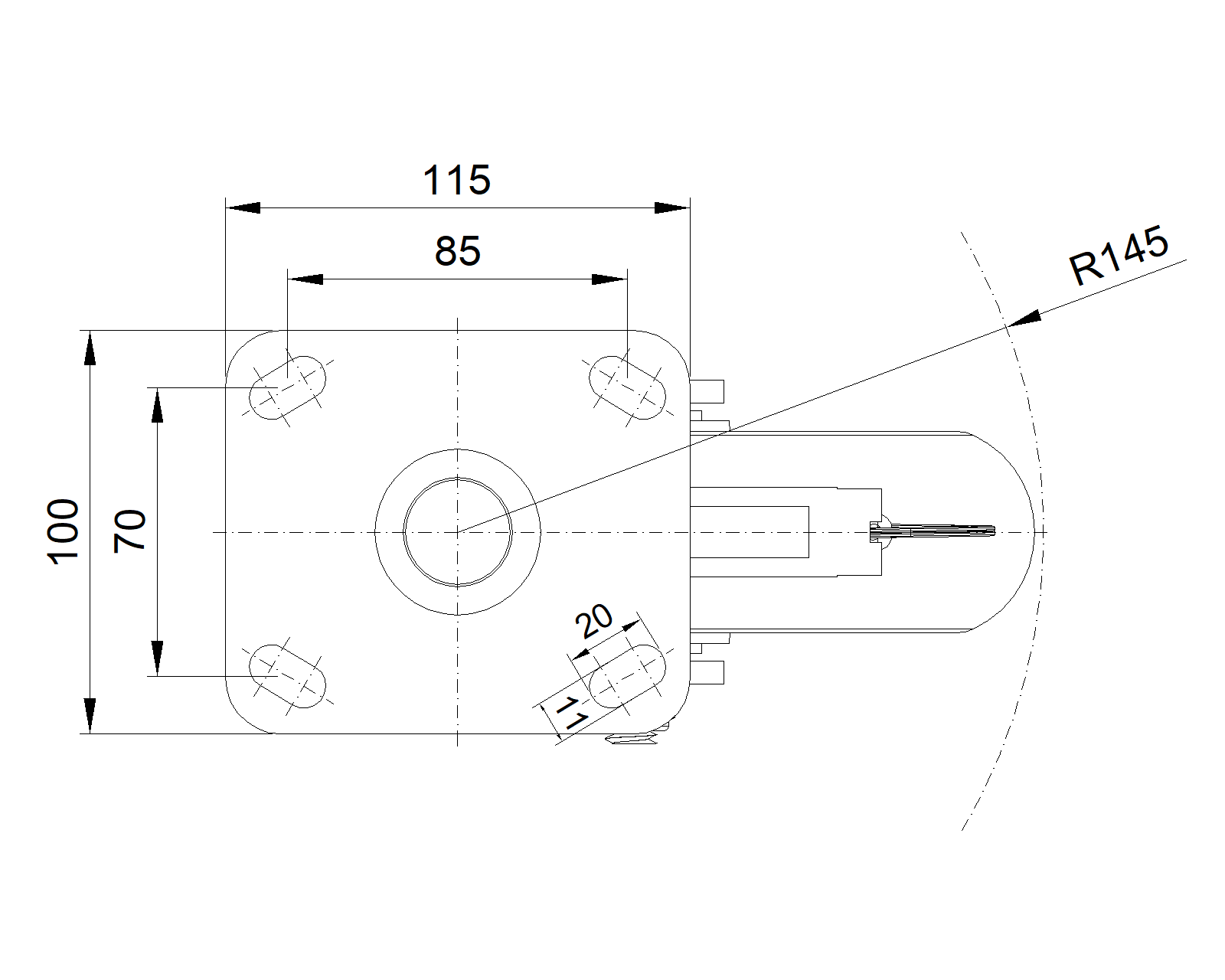 | Casters with Directional Lock locking system, Welded Caster Fork Zine-Plated, Mounting Type - Top Plate, 85x70 Bolt Hole Spacing Cast Iron Wheel Center, High Quality Polyurethane tread, Cast Iron brown Bearing—Ball Bearing |