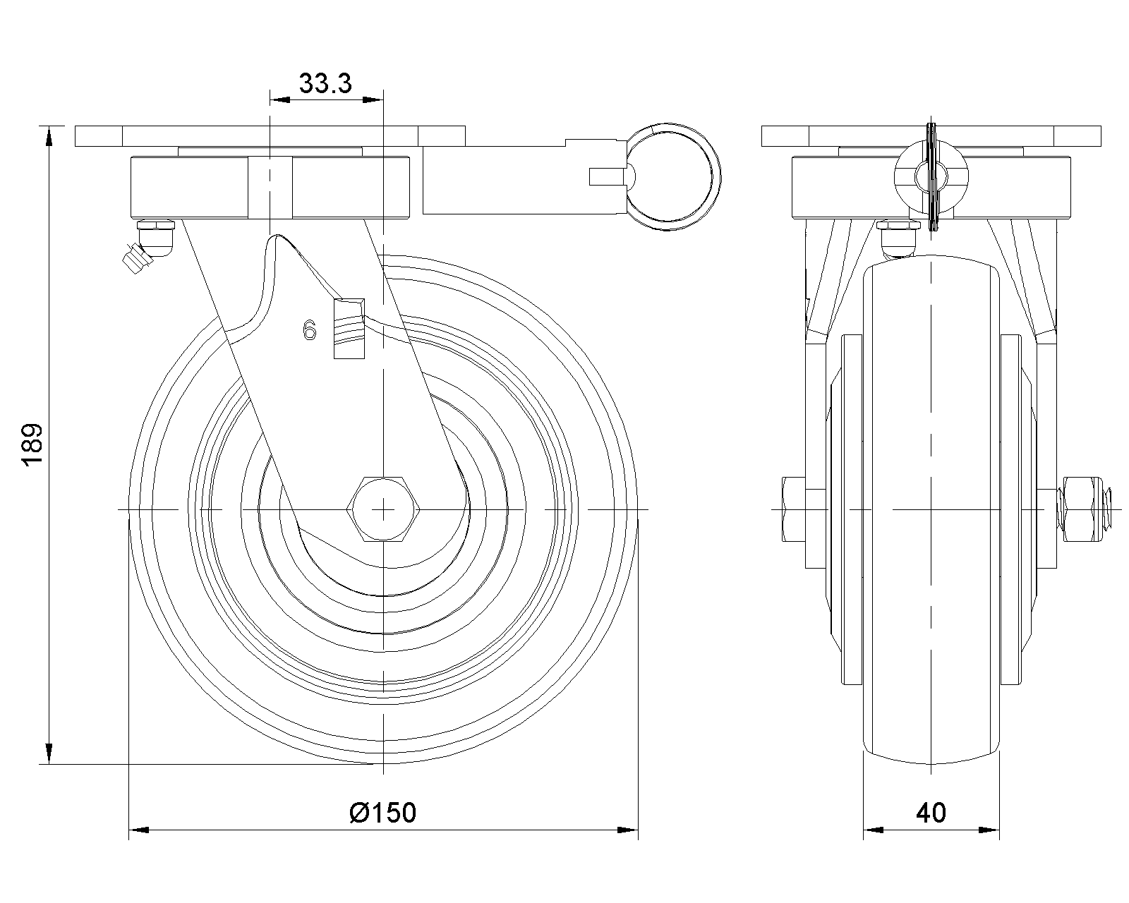 | Đường kính bánh xe CPD × Chiều rộng bánh xe 150 x 40mm |