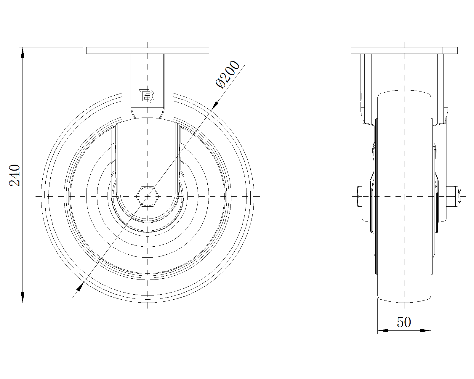| Đường kính bánh xe CPD × Chiều rộng bánh xe 200 x 50mm |