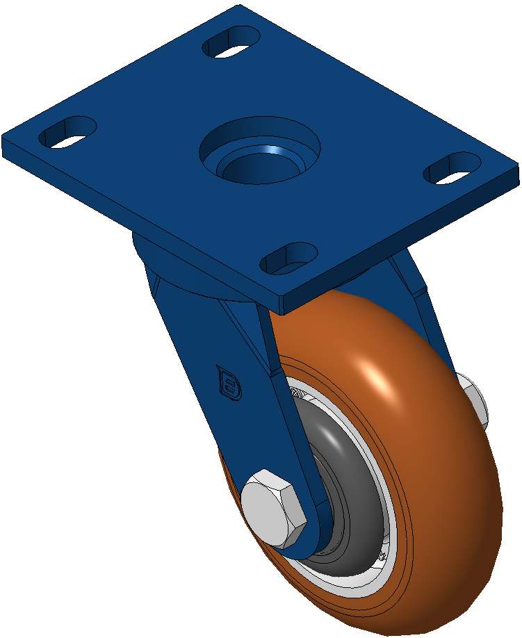 配有前煞式,锁定系统的脚轮,焊接钢板架 表面蓝漆,底板式安装装置,孔距110x75 铸铁制轮芯,高质量聚氨酯轮面 铣褐色,轮子轴承—精密滚珠 |