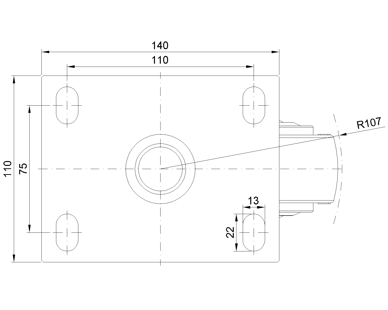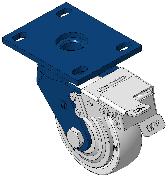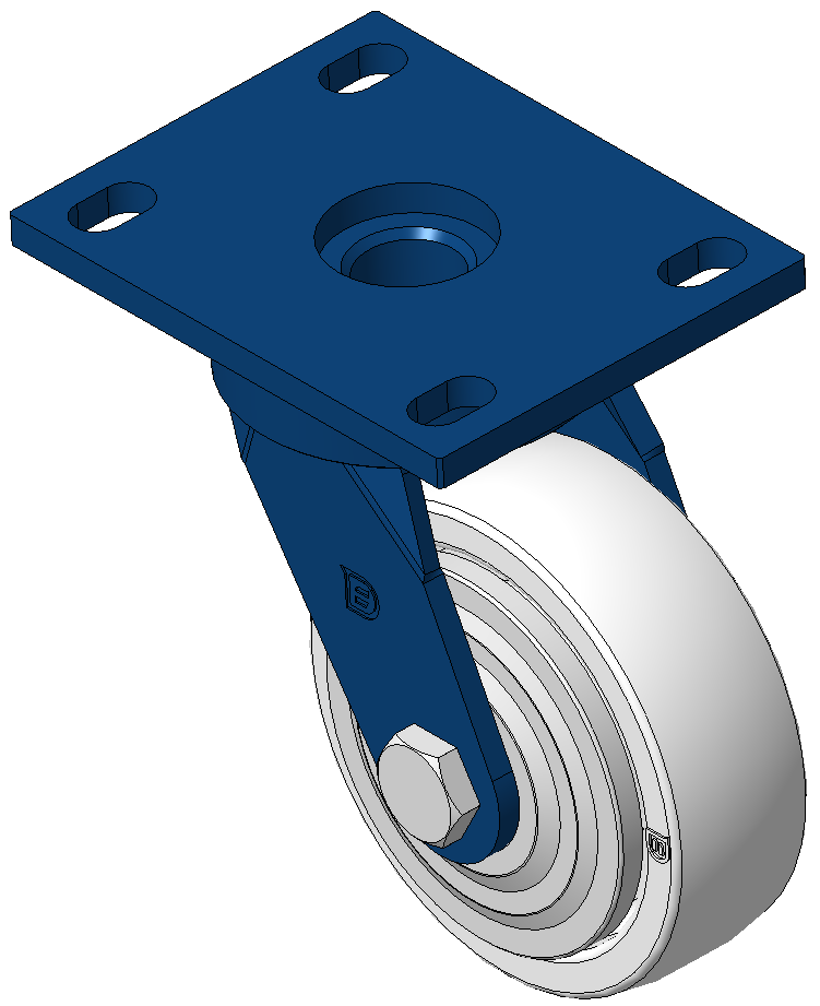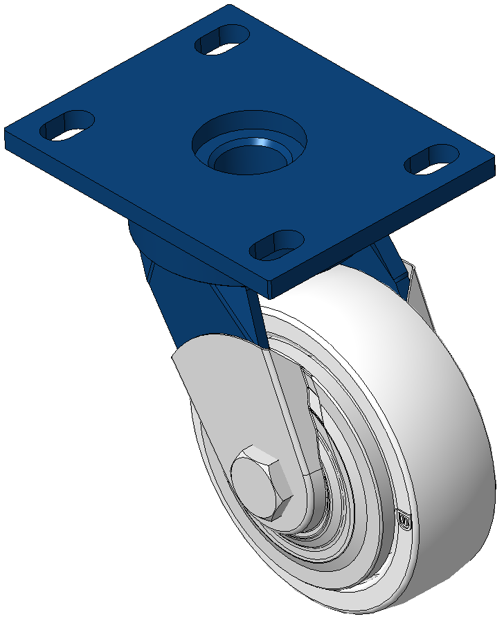 | Swivel Casters, Welded Caster Fork Surface sprayed with blue paint, Mounting Type - Top Plate, Hole spacing 110x75 Polypropylene Wheel Center and Wheel Tread, Natural Color Bearing - Ball Bearing |