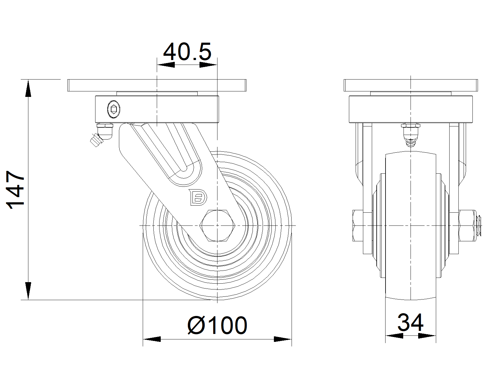 Metric Imperial Wheel Diameter 100mm Wheel Width 34mm |