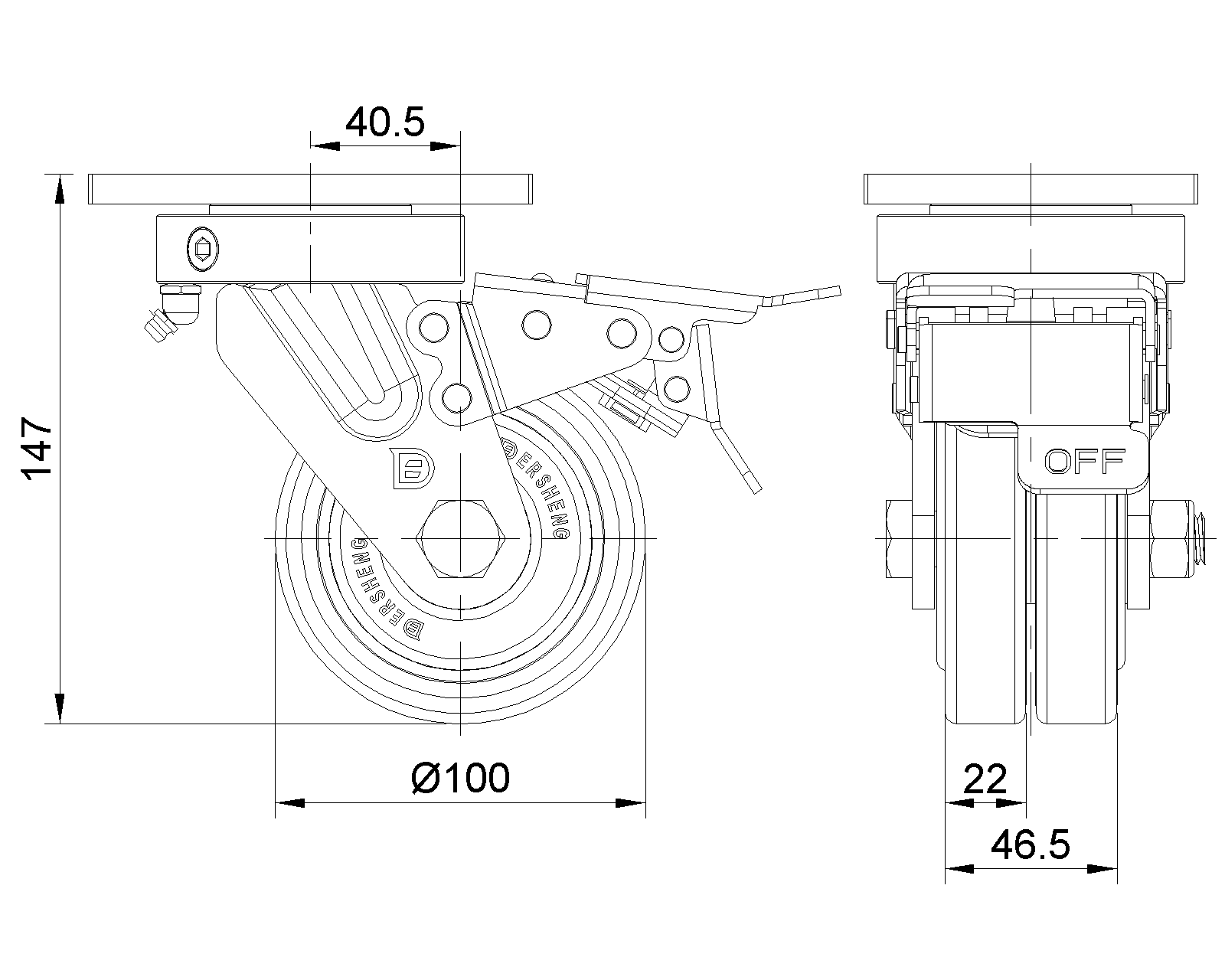 | Wheel tread: Made of high-quality polyurethane Wheel Center: iron core/cast iron core Drawings are for reference only and may differ from the product |