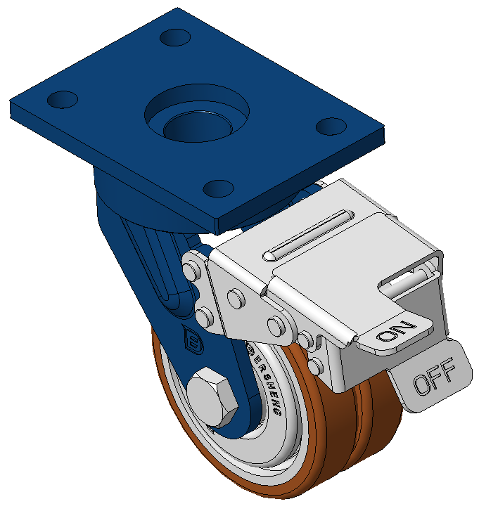 | Casters with front brake and With locking system, Welded Caster Fork Blue-painted finish, Mounting Type - Top Plate, 90x60 Bolt Hole Spacing Cast Iron Wheel Center, High Quality Polyurethane Wheel Tread, Cast Iron brown Bearings—special Ball Bearings for reduced Rolling Resistance ZQPU dual wheels, Ergonomic design designally designed for easier starting and turning |
