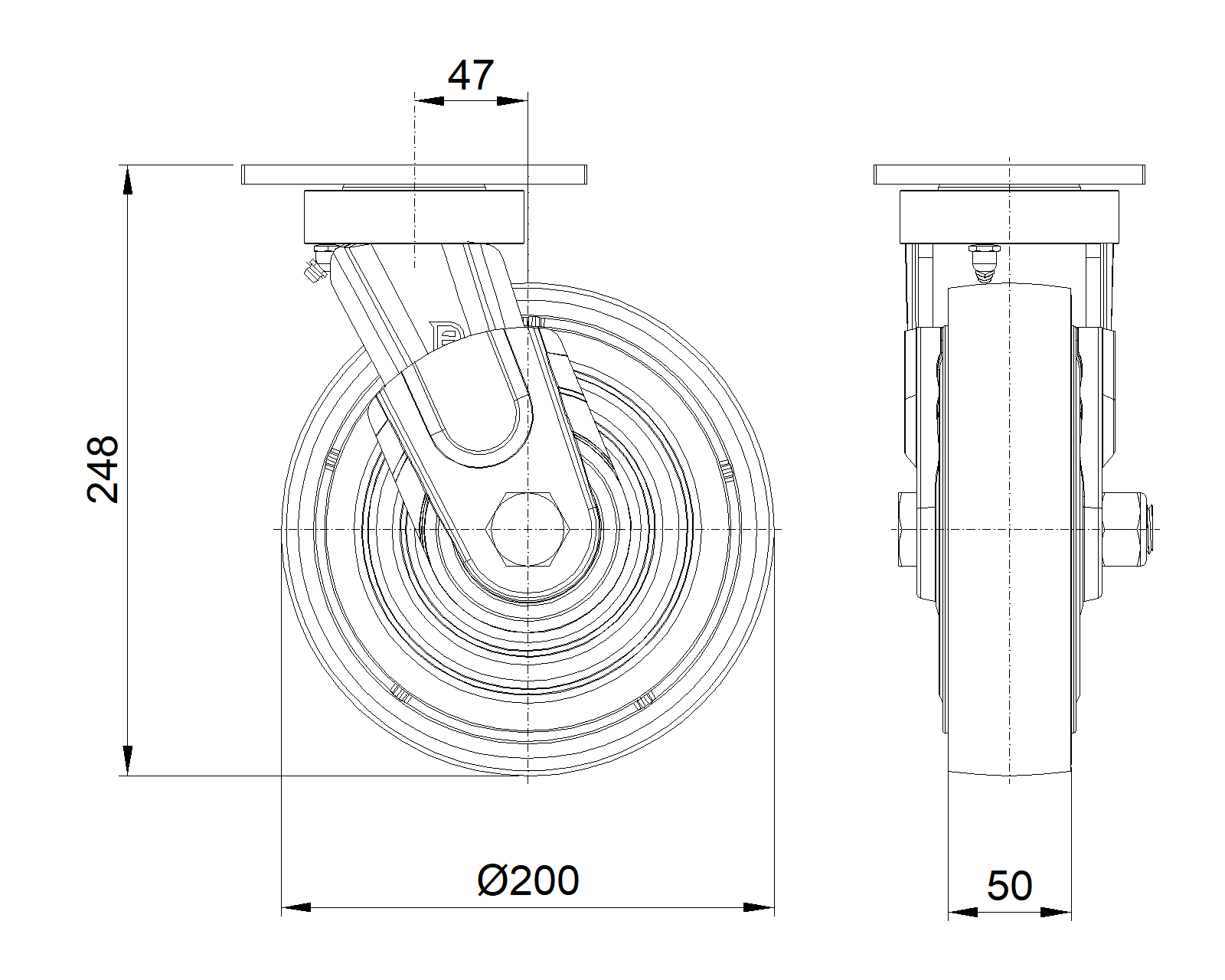 | Wheel tread: Made of high-quality polyurethane Wheel Center: iron core/cast iron core Drawings are for reference only and may differ from the product |