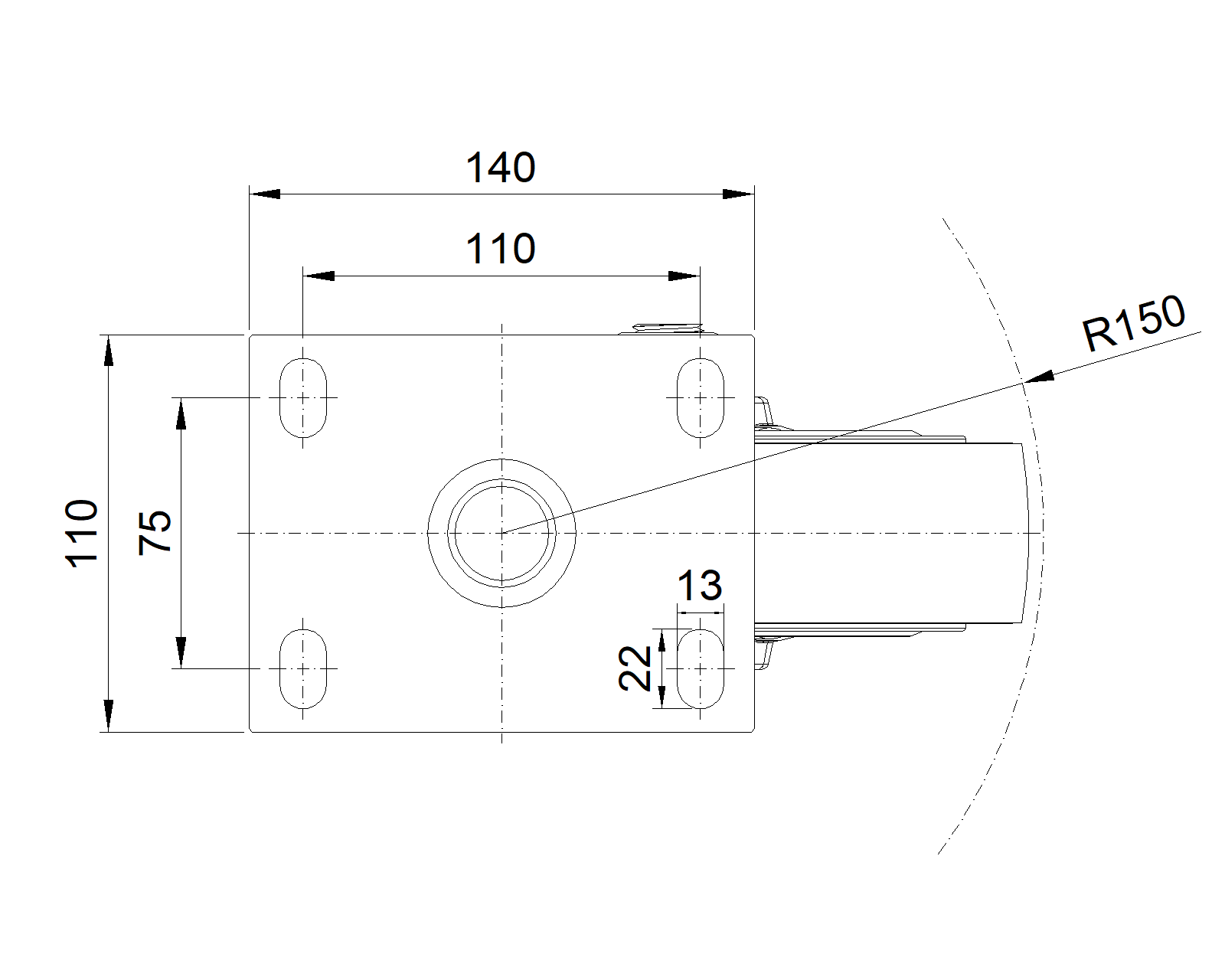 Swivel Caster with Welded Caster Fork Blue-painted finish, Mounting Type - Top Plate, 110x75 Bolt Hole Spacing Cast Iron core with High Quality Polyurethane Wheel Tread Cast Iron red, Ball Bearings, with special Anti-thread wheel cover |