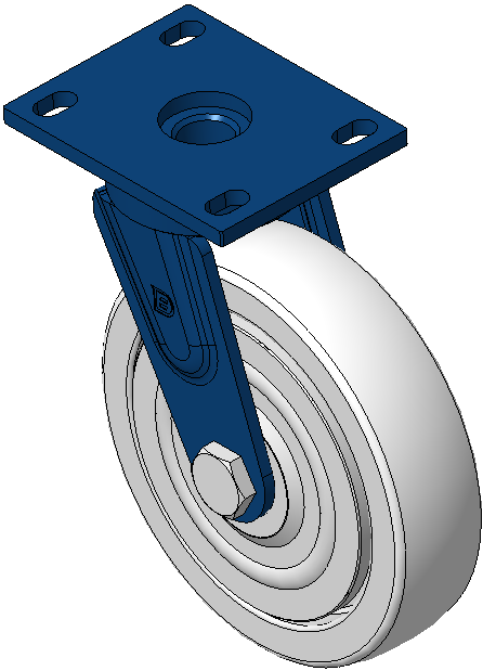 Swivel Caster, Welded Caster Fork Blue painted finish, Mounting Type - Top Plate, 110x75 Bolt Hole Spacing Reinforced Polypropylene Wheel Center, natural color Wheel Tread Bearings—Ball Bearings |