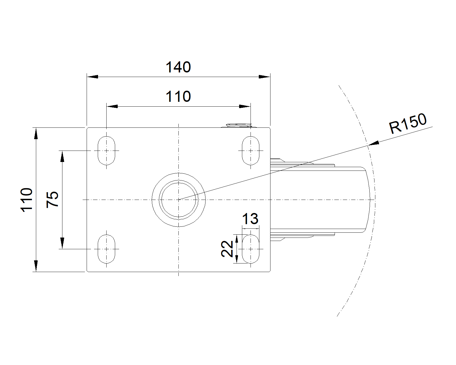 Swivel Caster with Welded Caster Fork Blue painted finish, Mounting Type - Top Plate, 110x75 Bolt Hole Spacing Polypropylene Wheel Center, natural Wheel Tread Bearings—Ball Bearings |