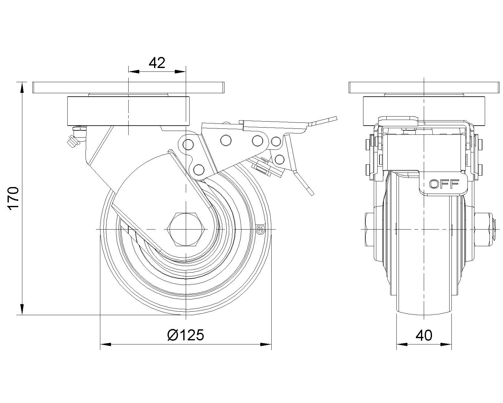 | Wheel tread: Thermoplastic (PA6) Wheel Center: Thermoplastic (PA6) Drawings are for reference only and may differ from the product |