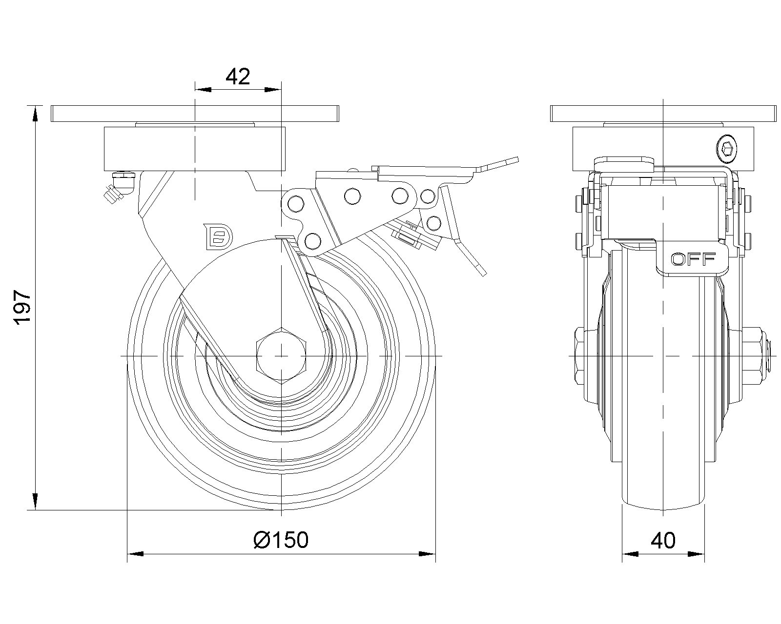 | Wheel tread: Thermoplastic (PA6) Wheel Center: Thermoplastic (PA6) Drawings are for reference only and may differ from the product |