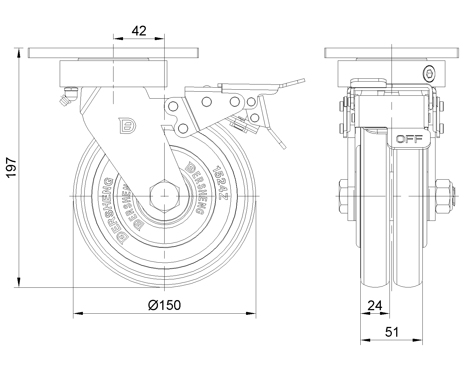 | ZQPU (brown round) Wheel Diameter x Wheel Width 150 x 24 (51) mm |