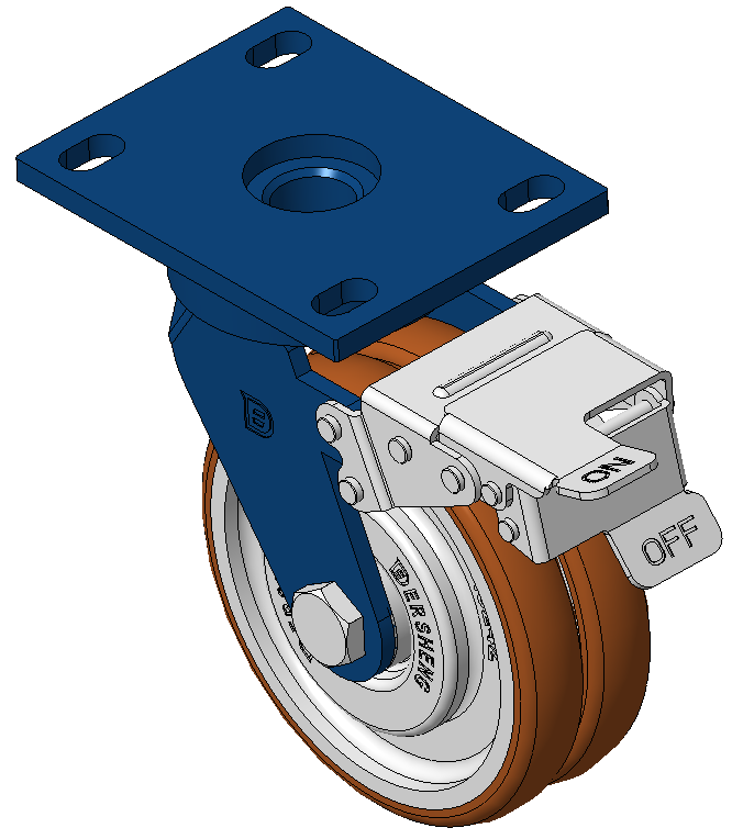 | Casters with front brake and With locking system, Welded Caster Fork Blue-painted finish, Mounting Type - Top Plate, 110x75 Bolt Hole Spacing Cast Iron Wheel Center, High Quality Polyurethane Wheel Tread, Cast Iron brown Bearings—special Ball Bearings for reduced Rolling Resistance ZQPU dual wheels, Ergonomic design designally designed for easier starting and turning |