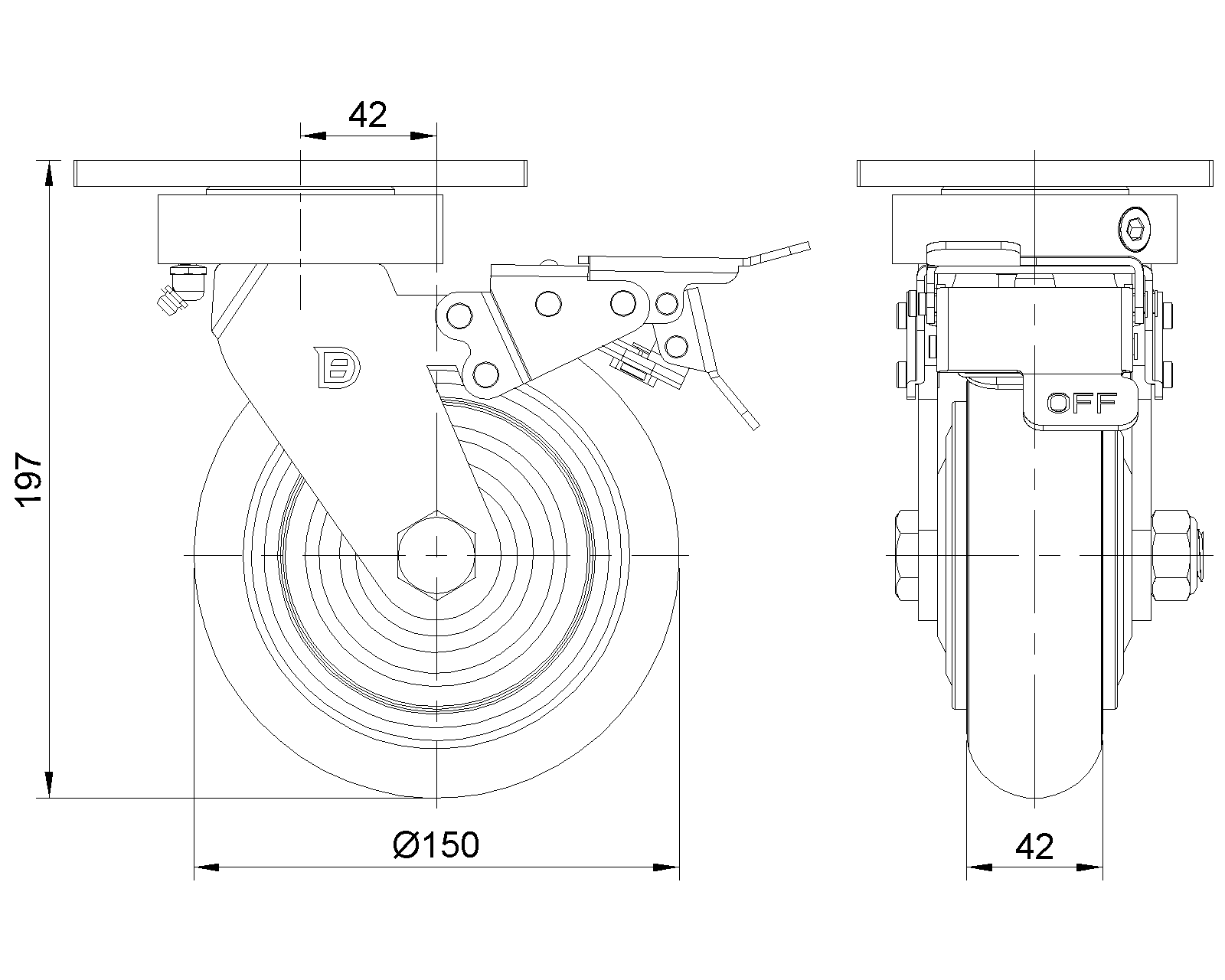 | EQPU (brown arc) Wheel Diameter x Wheel Width 150 x 42mm |