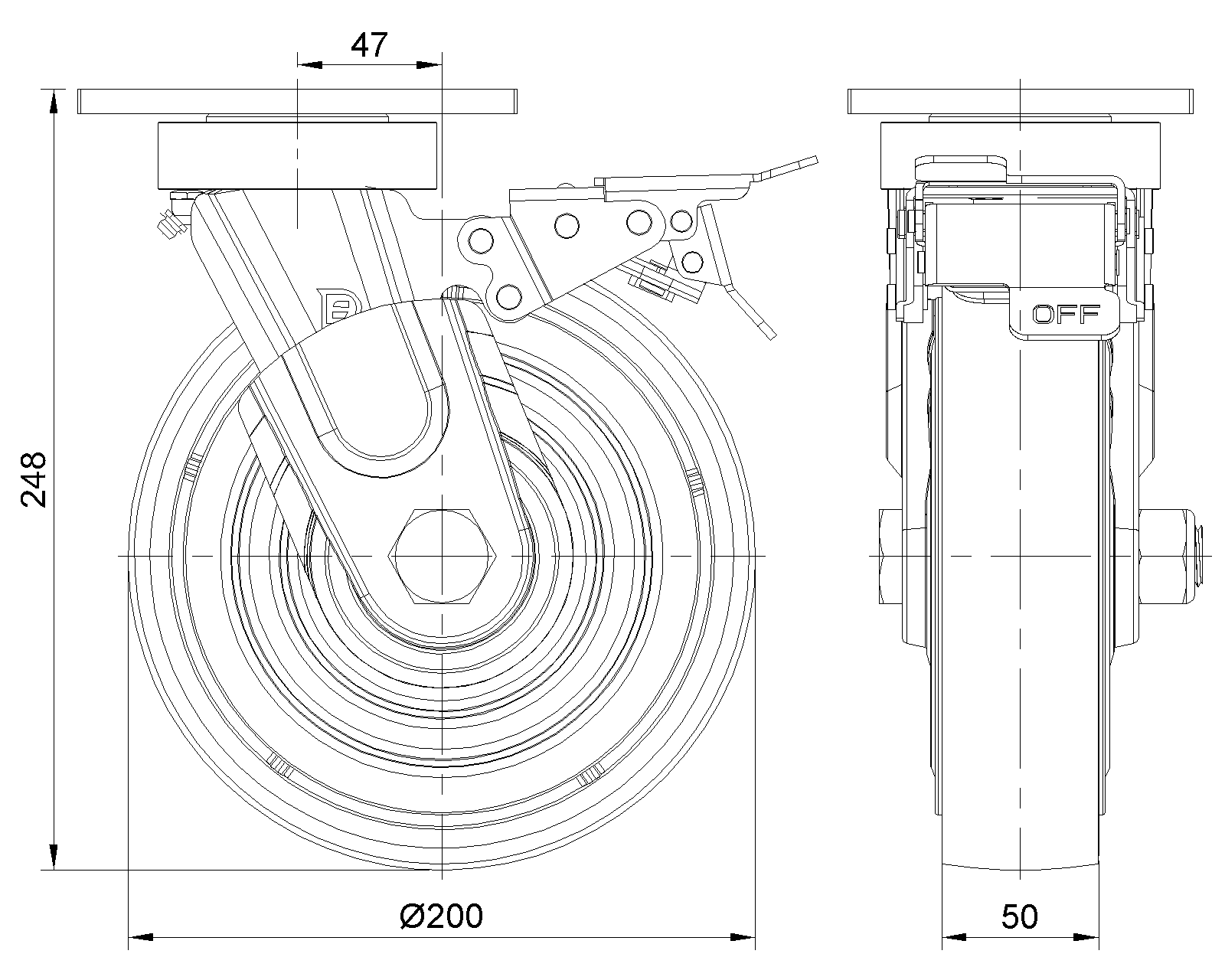 | QPU (brown round) Wheel Diameter x Wheel Width 200 x 50mm |