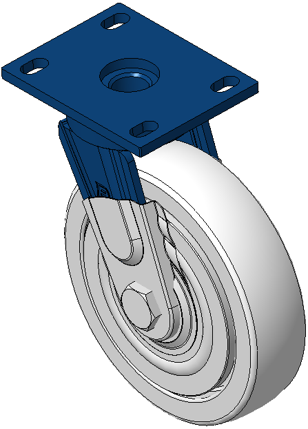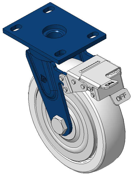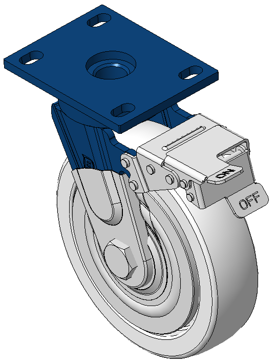 | Casters with front brake and With locking system, Welded Caster Fork Blue-painted finish, Mounting Type - Top Plate, 110x75 Bolt Hole Spacing Polypropylene Wheel Center, natural Wheel Tread Bearings—Ball Bearings |