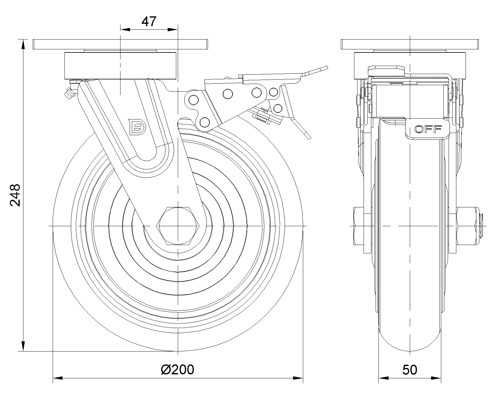 | EQPU (brown round) Wheel Diameter x Wheel Width 200 x 50mm |