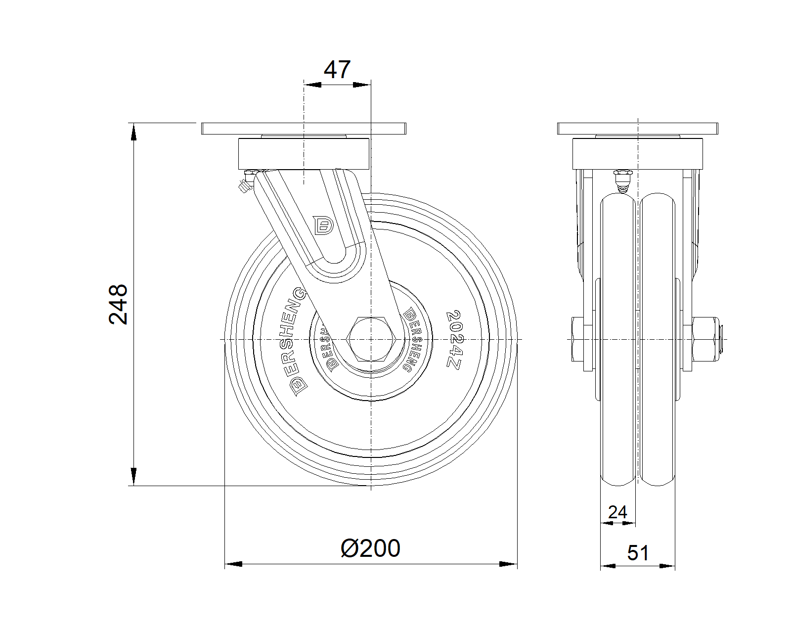 | ZQPU (brown round) Wheel Diameter x Wheel Width 200 x 24 (51) mm |