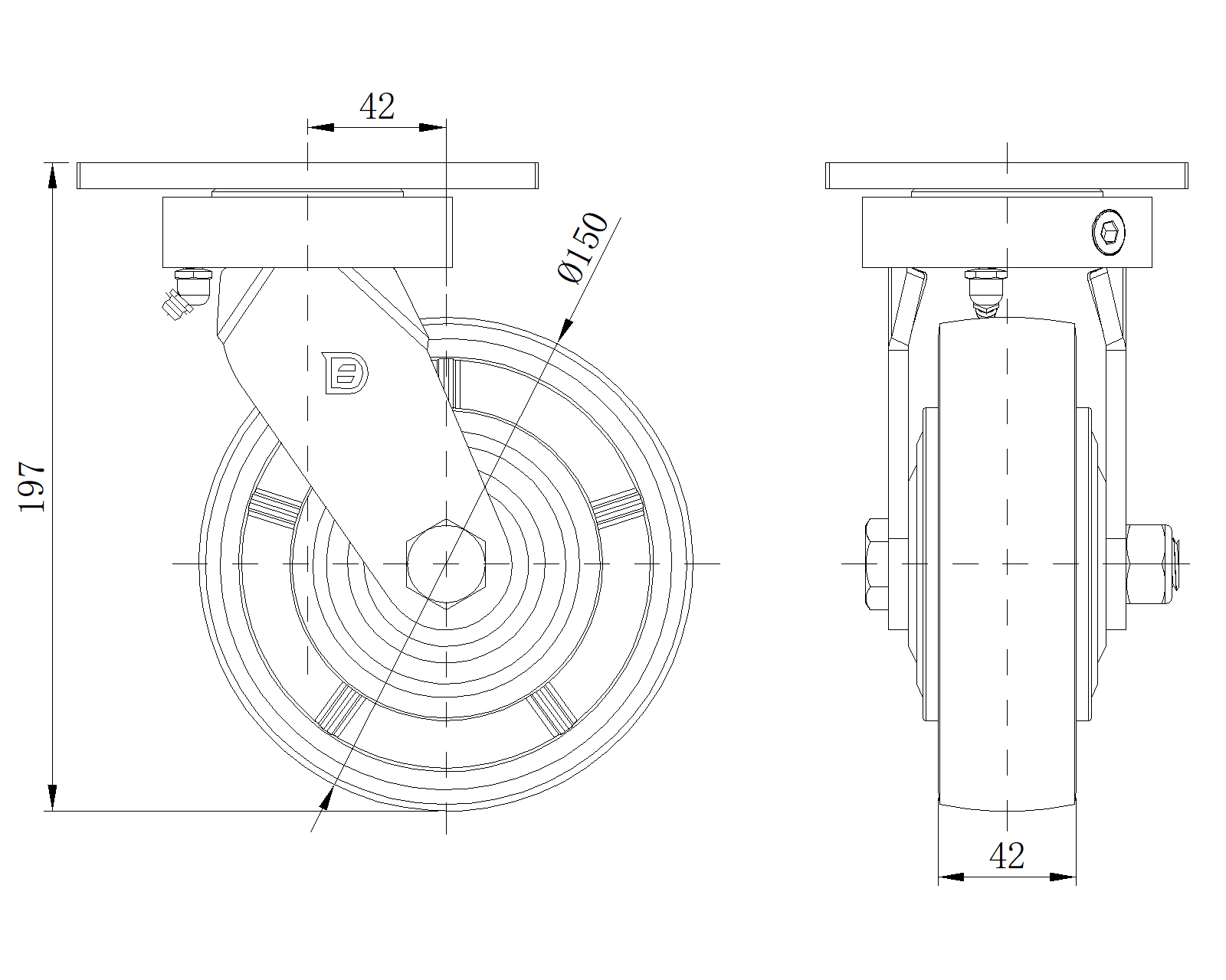 | QPU (Brown round) Wheel Diameter × Wheel Width 150 x 42mm |