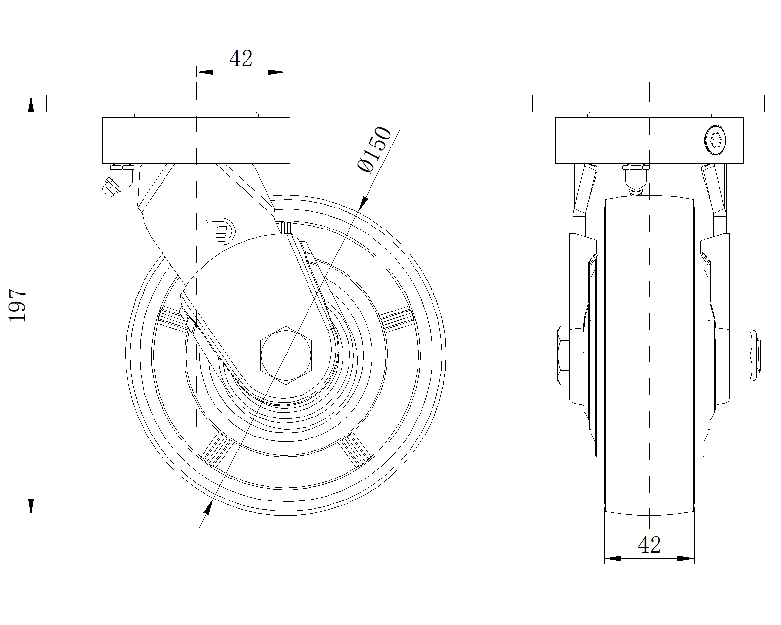 | QPU (Brown round) Wheel Diameter × Wheel Width 150 x 42mm |