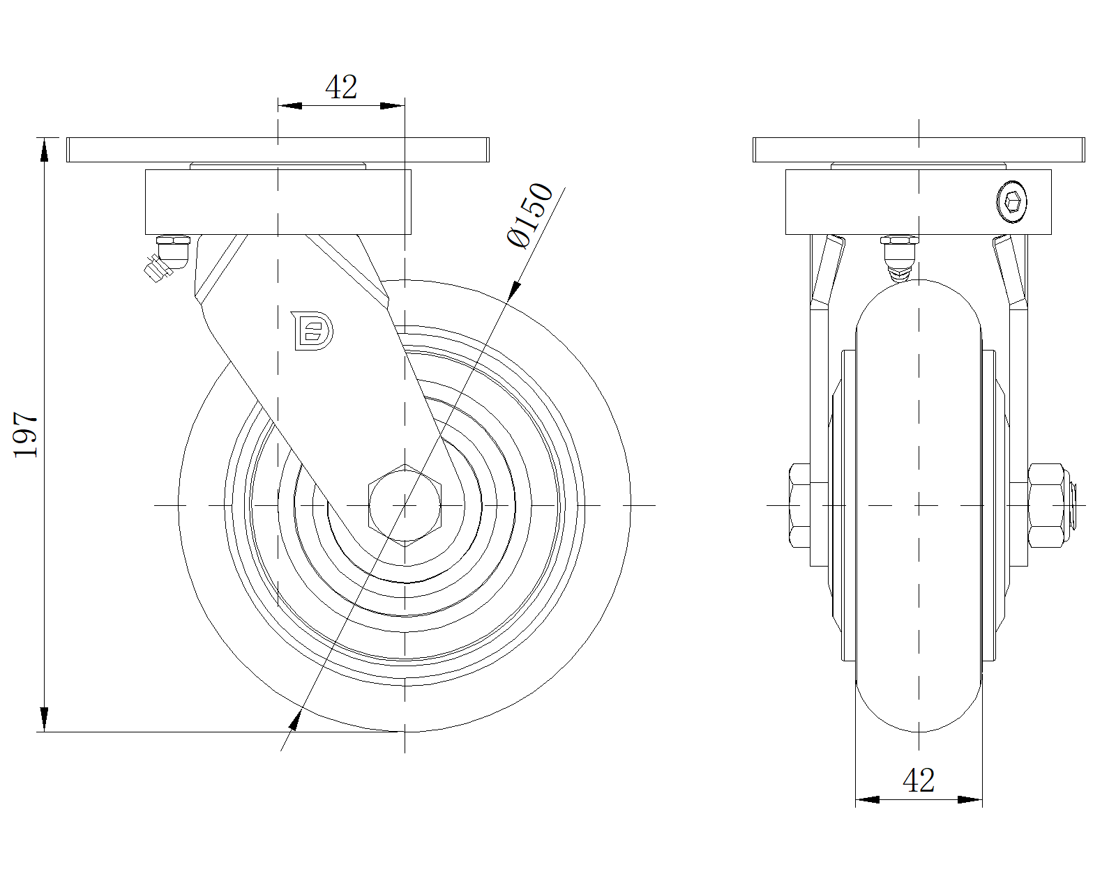 | EQPU (brown arc) Wheel Diameter x Wheel Width 150 x 42mm |