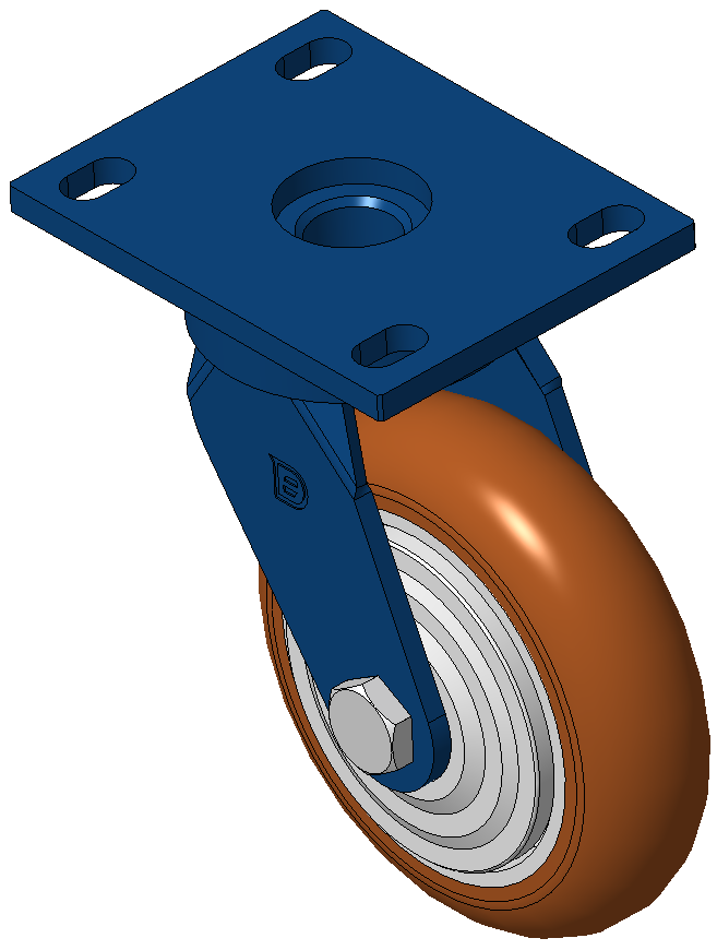 | Swivel Casters, Welded Caster Fork Surface sprayed with blue paint, Top Plate installation device, Hole spacing 85x70 Wheel core made of cast iron, high quality polyurethane Wheel Tread, Cast Iron brown Bearing—Ball Bearing |