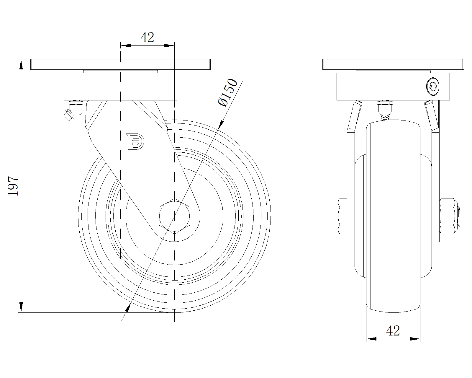 | Wheel tread: Made of high quality polyurethane Wheel Center: iron core/cast iron core Drawings are for reference only and may differ from the product |