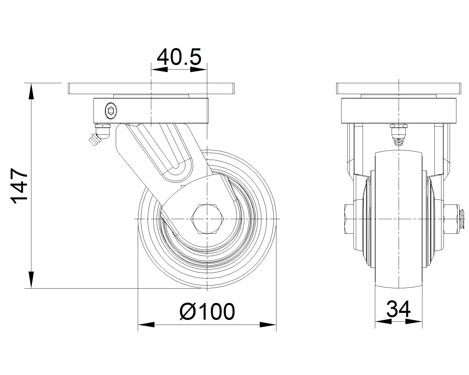 | Bánh xe QPU (Màu nâu vòng cung) đường kính bánh xe × chiều rộng bánh xe 100 x 34mm |