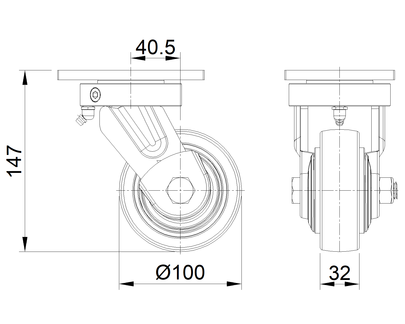 | Bánh xe CPD đường kính bánh xe × chiều rộng bánh xe 100 x 32mm |