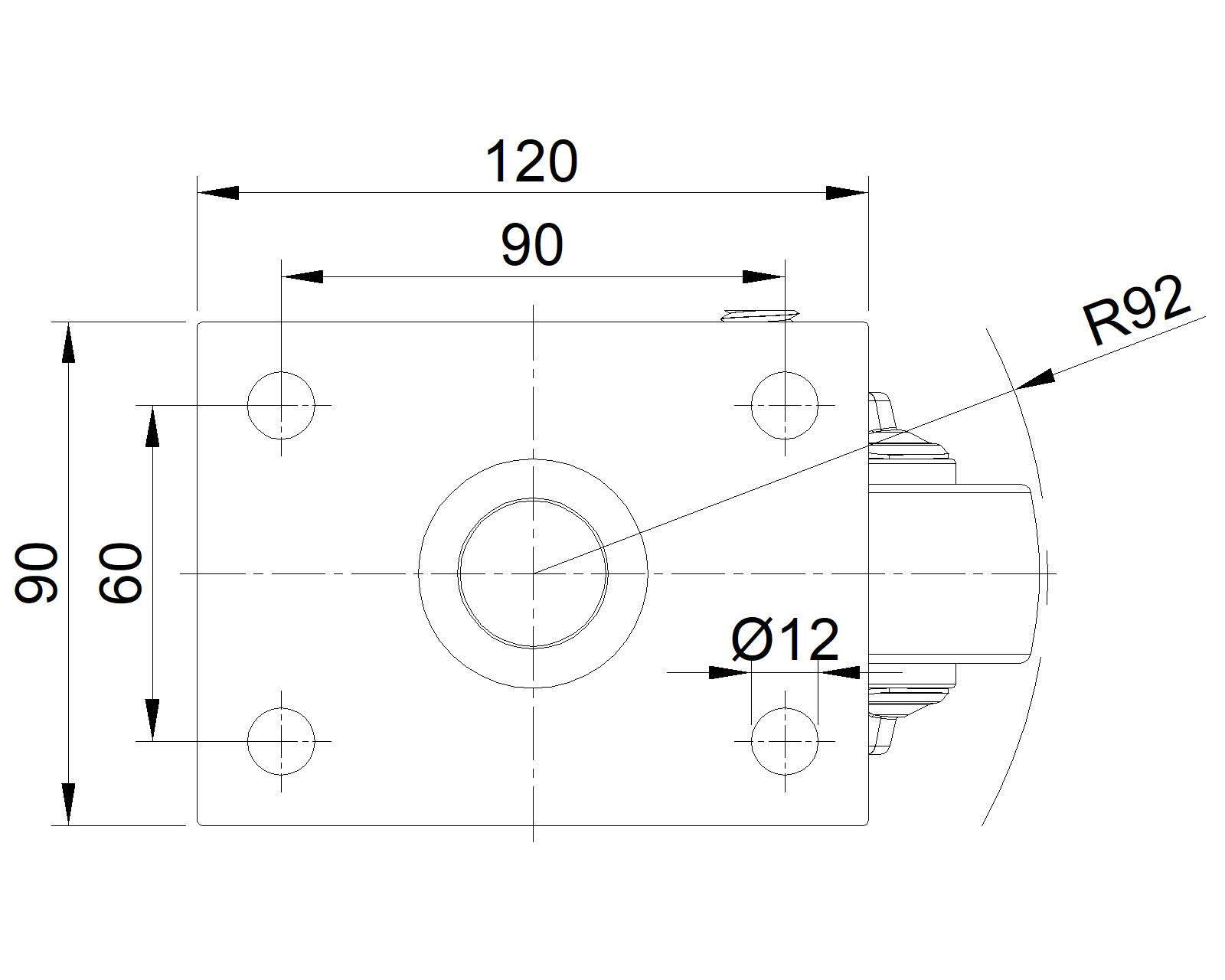 Thiết bị lắp đặt đế, khoảng cách lỗ 90 x 60mm Lõi bánh xe bằng polypropylen, bề mặt bánh xe tự nhiên Vòng bi bánh xe—vòng bi cầu chính xác |