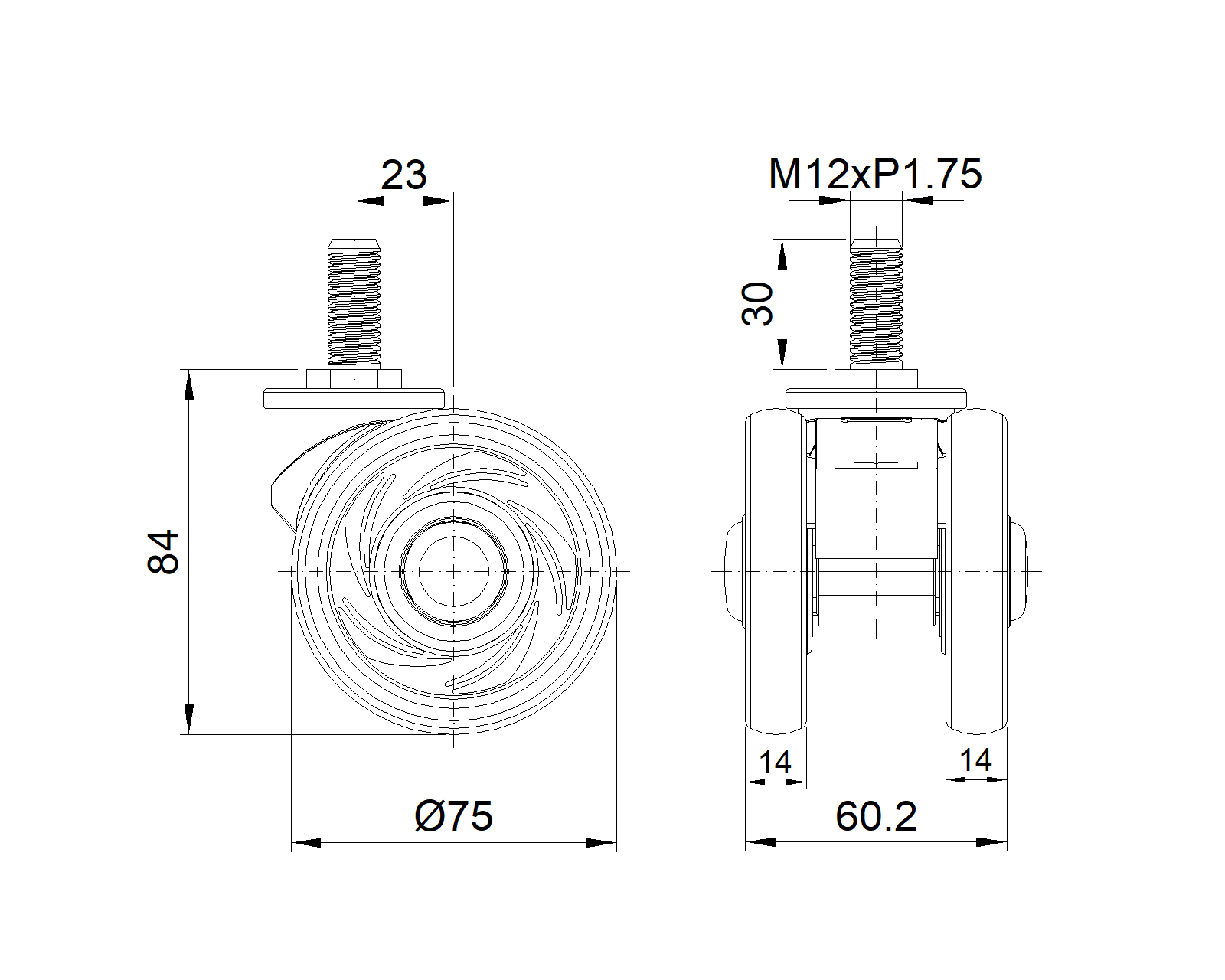| Resolute Rubber wheel (white dark gray) Wheel Diameter x Wheel Width 75 x 14mm |