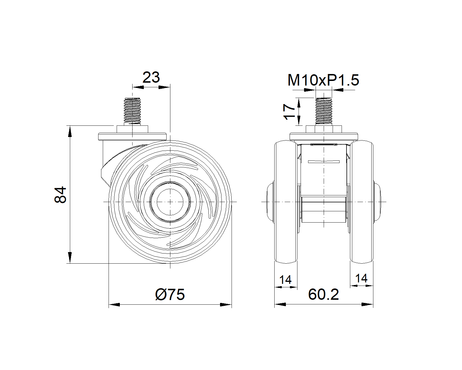 | Resolute Rubber wheel (white dark gray) Wheel Diameter x Wheel Width 75 x 14mm |