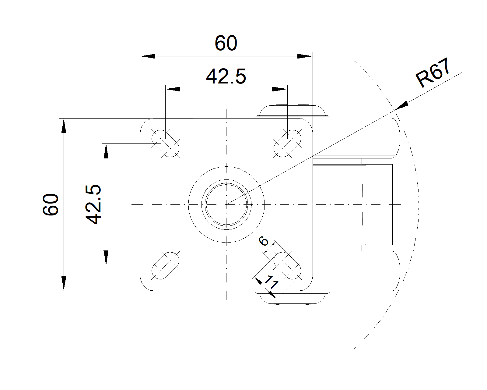 Adjustable Casters, 42.5x42.5mm angled perforated Top Plate