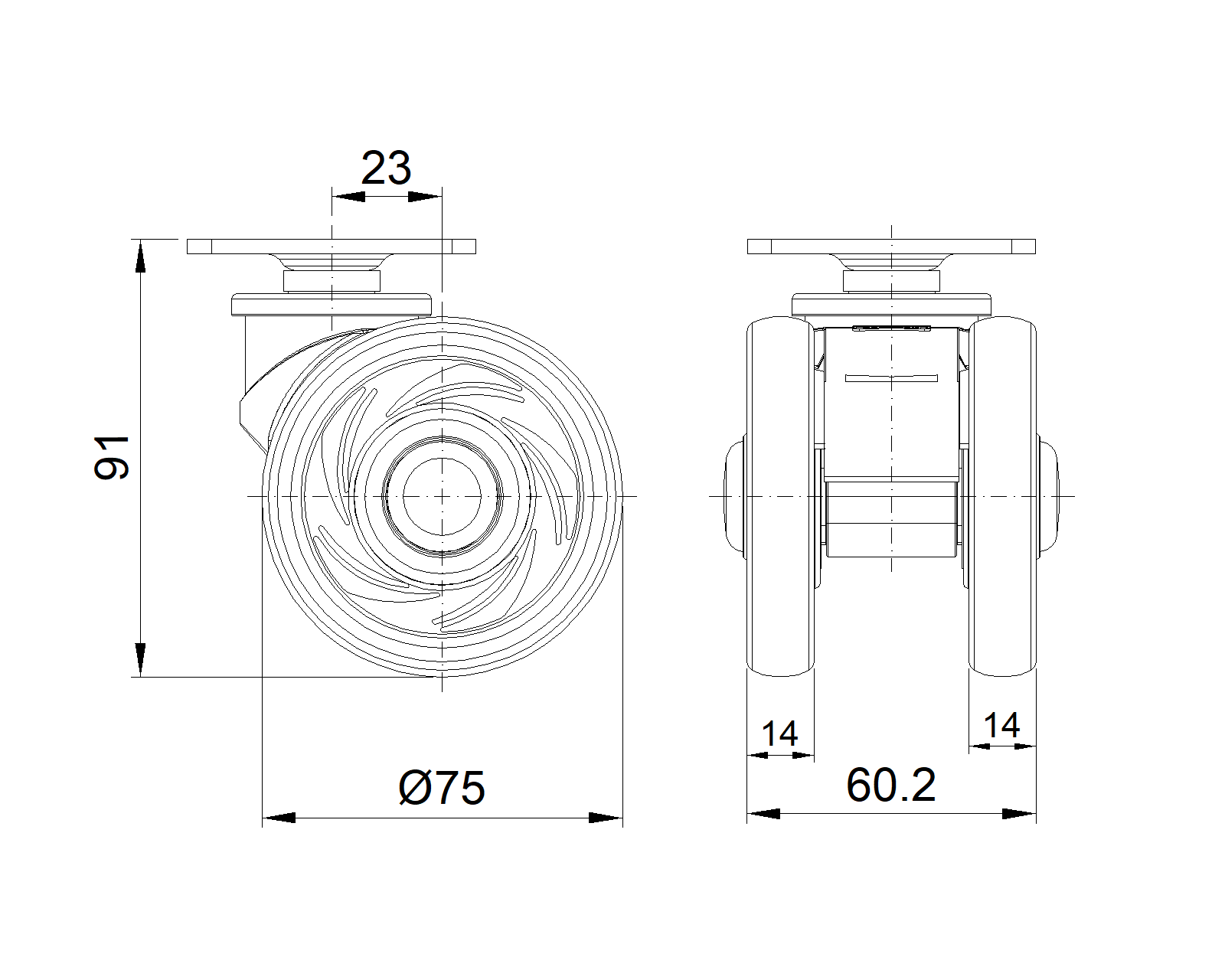 | Resolute Rubber wheel (white dark gray) Wheel Diameter x Wheel Width 75 x 14mm |