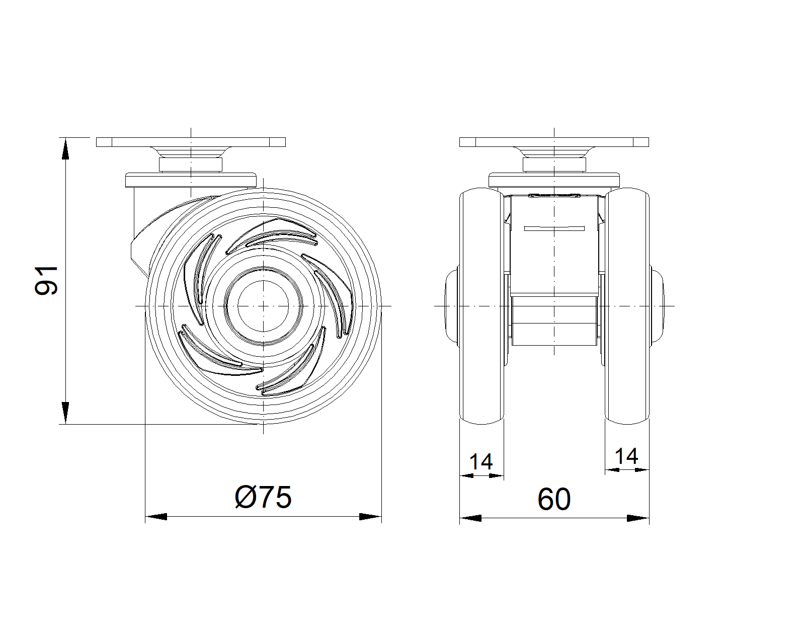 | Resolute Rubber wheel (white dark gray) Wheel Diameter x Wheel Width 75 x 14mm |