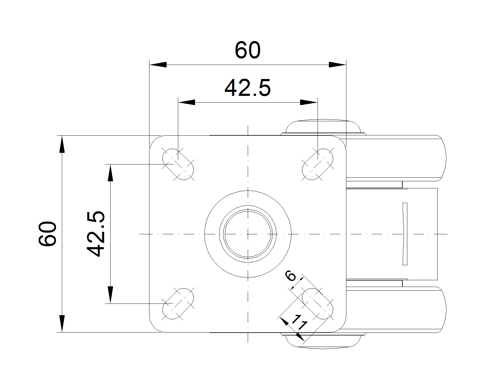 Rigid Casters, 42.5x42.5mm angled hole Top Plate