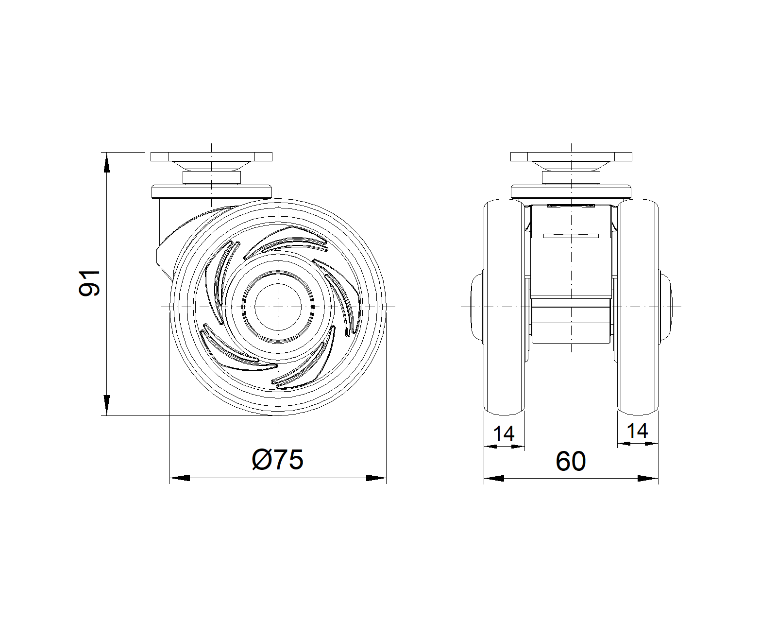 | Resolute Rubber wheel (white dark gray) Wheel Diameter x Wheel Width 75 x 14mm |