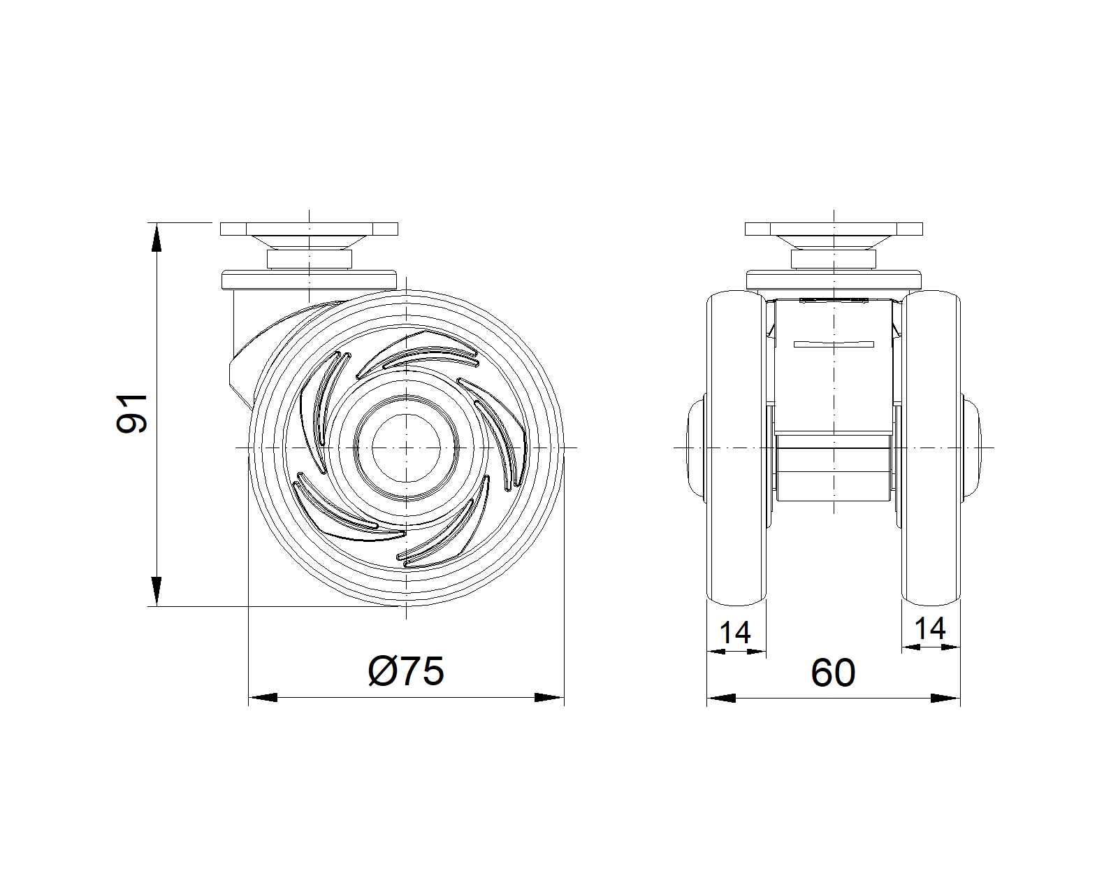 | Resolute Rubber wheel(all dark gray) Wheel Diameter x Wheel Width 75 x 14mm |