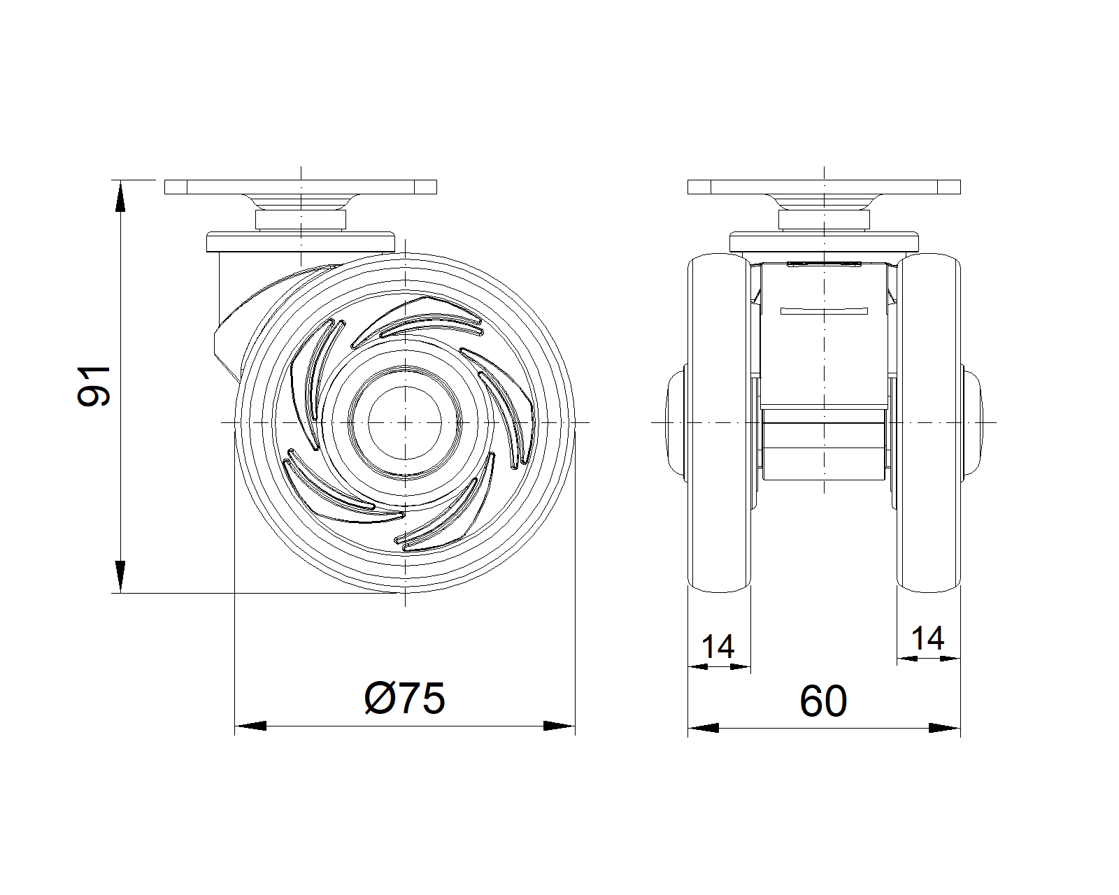 | Resolute Rubber wheel (all black) Wheel Diameter x Wheel Width 75 x 14mm |