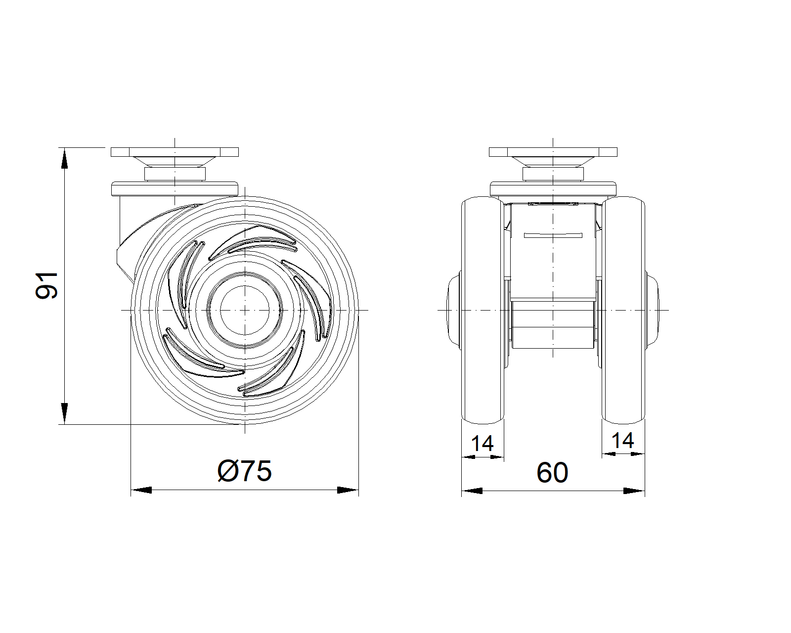 | Resolute Rubber wheel (all black) Wheel Diameter x Wheel Width 75 x 14mm |