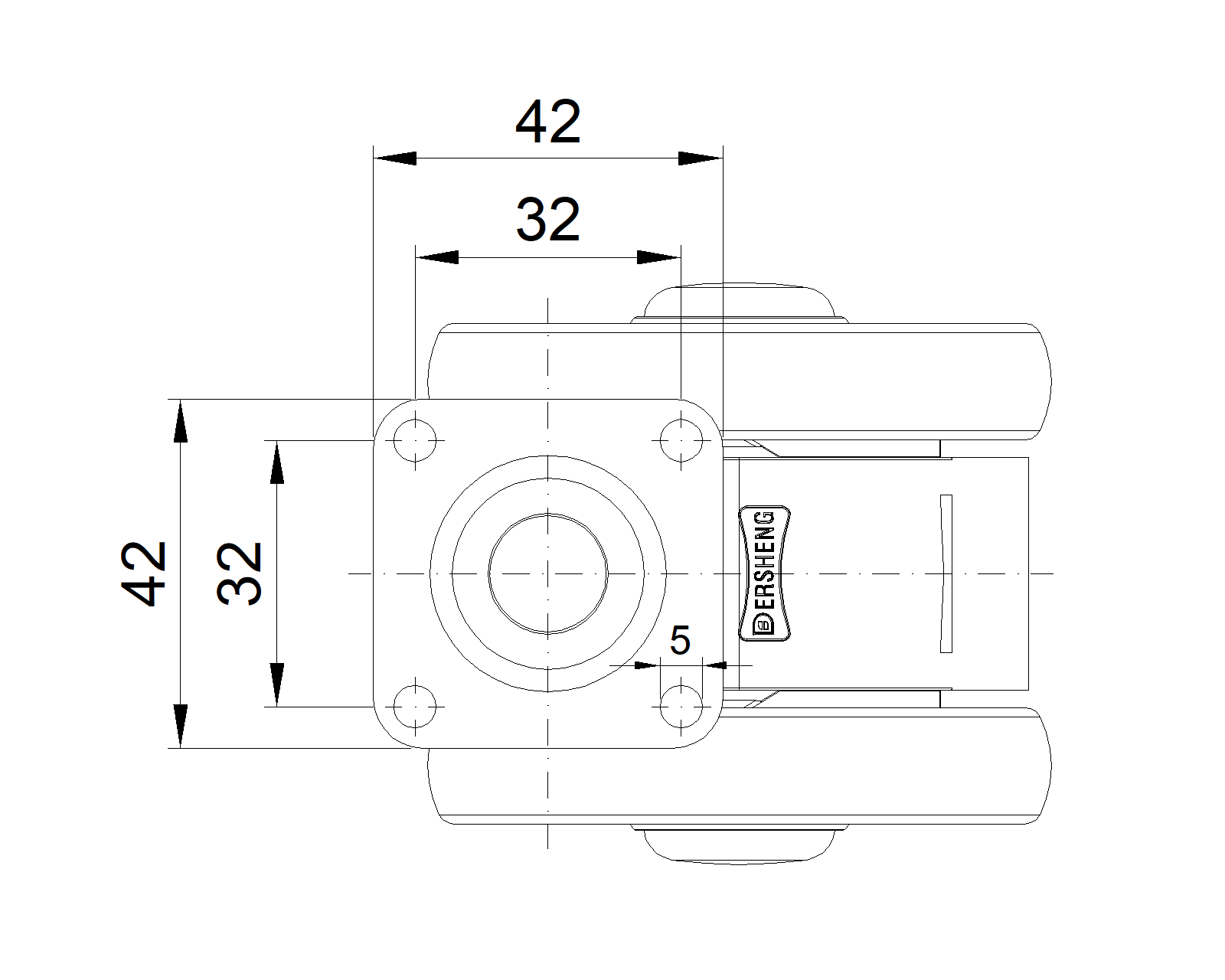 Rigid Casters, 32x32 angled hole Top Plate