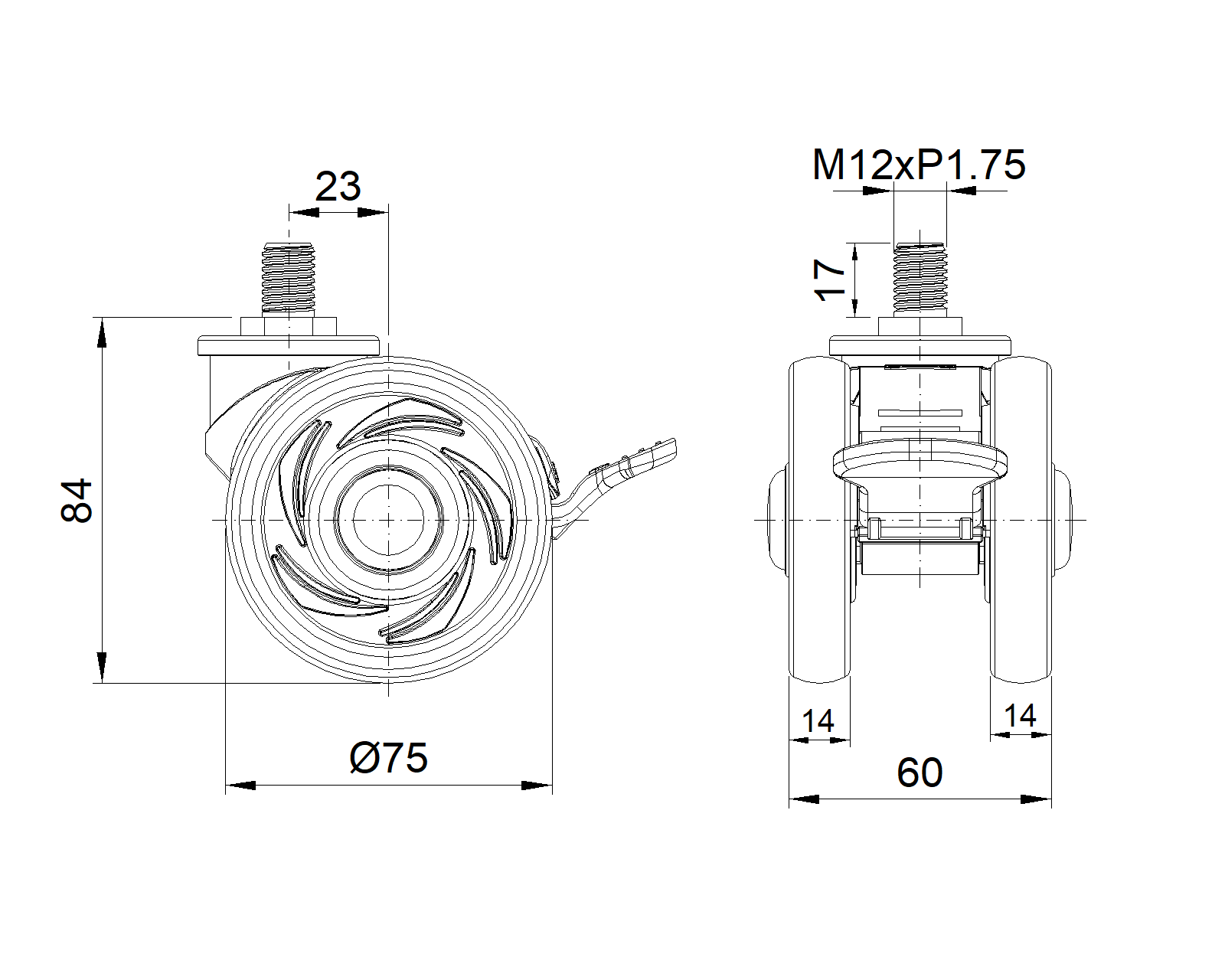 | Resolute Rubber wheel (white dark gray) Wheel Diameter x Wheel Width 75 x 14mm |