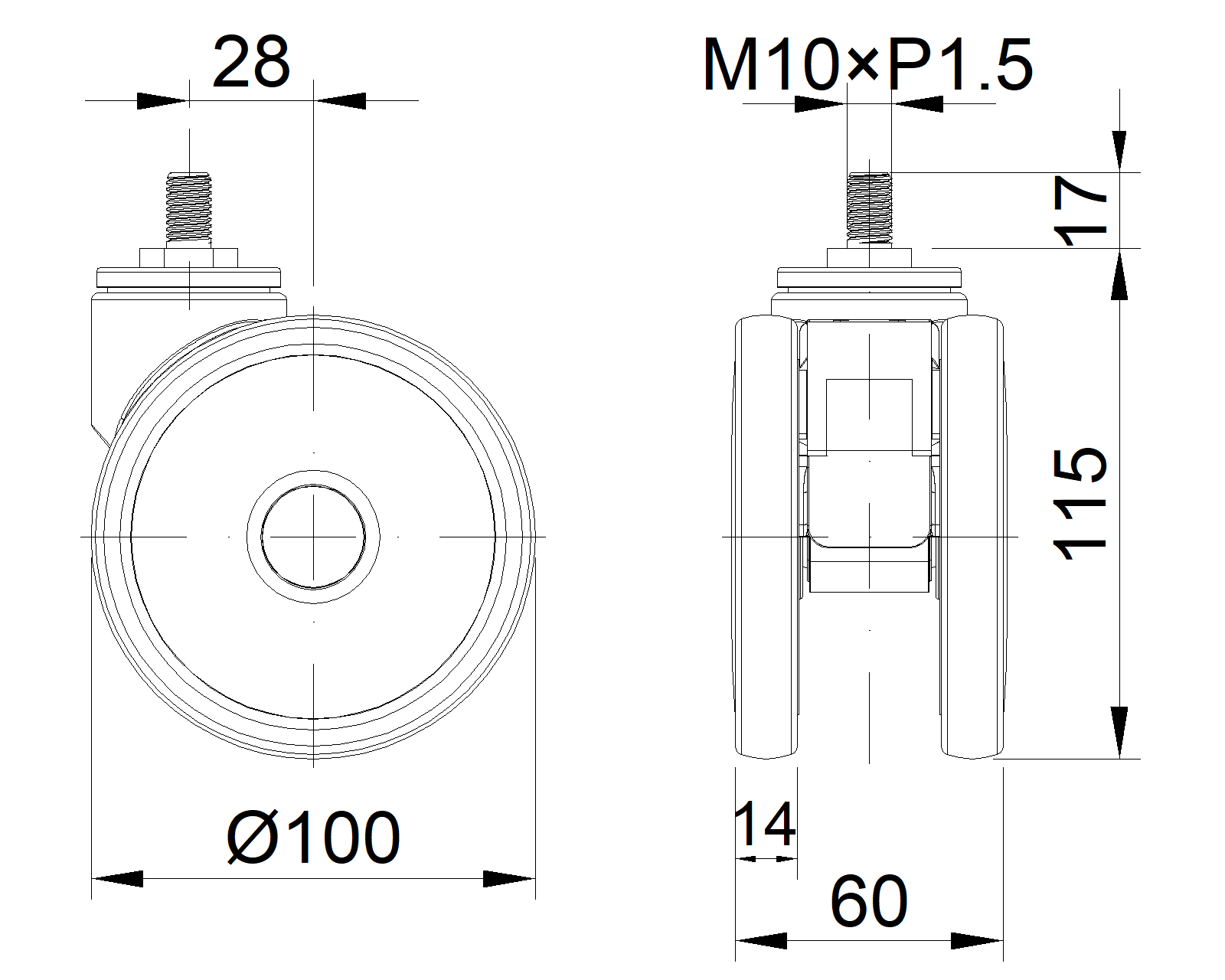 | Wheel tread: Thermoplastic rubber elastomer (TPR) Wheel Center: Made of high-quality impact-resistant polypropylene Drawings are for reference only and may differ from the product |