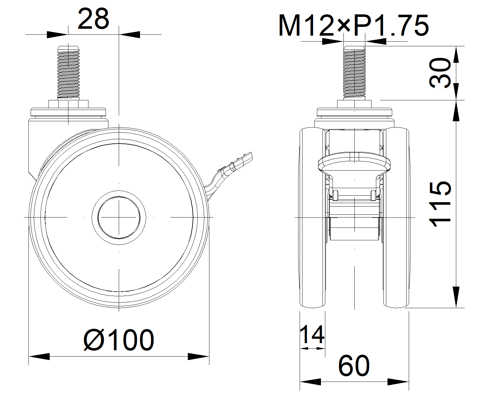 | Wheel tread: Thermoplastic rubber elastomer (TPR) Wheel Center: Made of high-quality impact-resistant polypropylene Drawings are for reference only and may differ from the product |