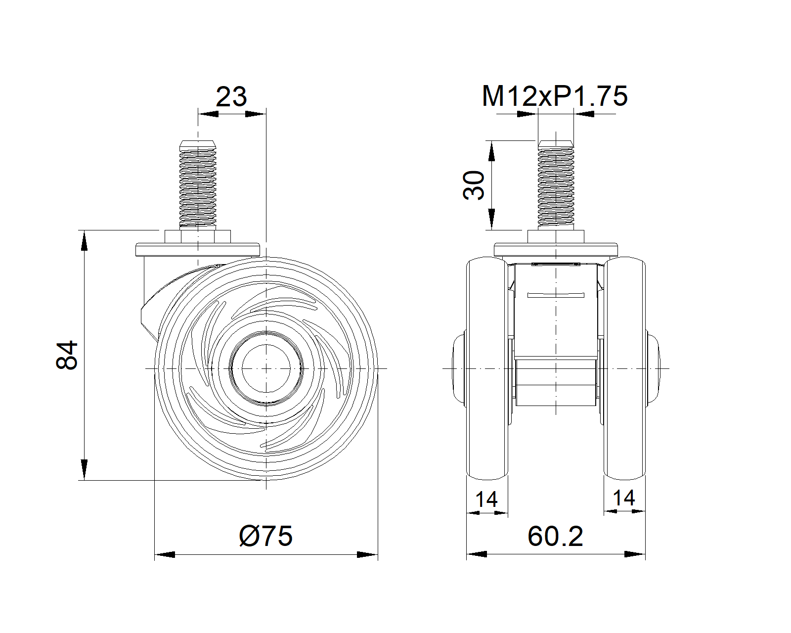 | Resolute Rubber wheel (white dark gray) Wheel Diameter x Wheel Width 75x 14mm |