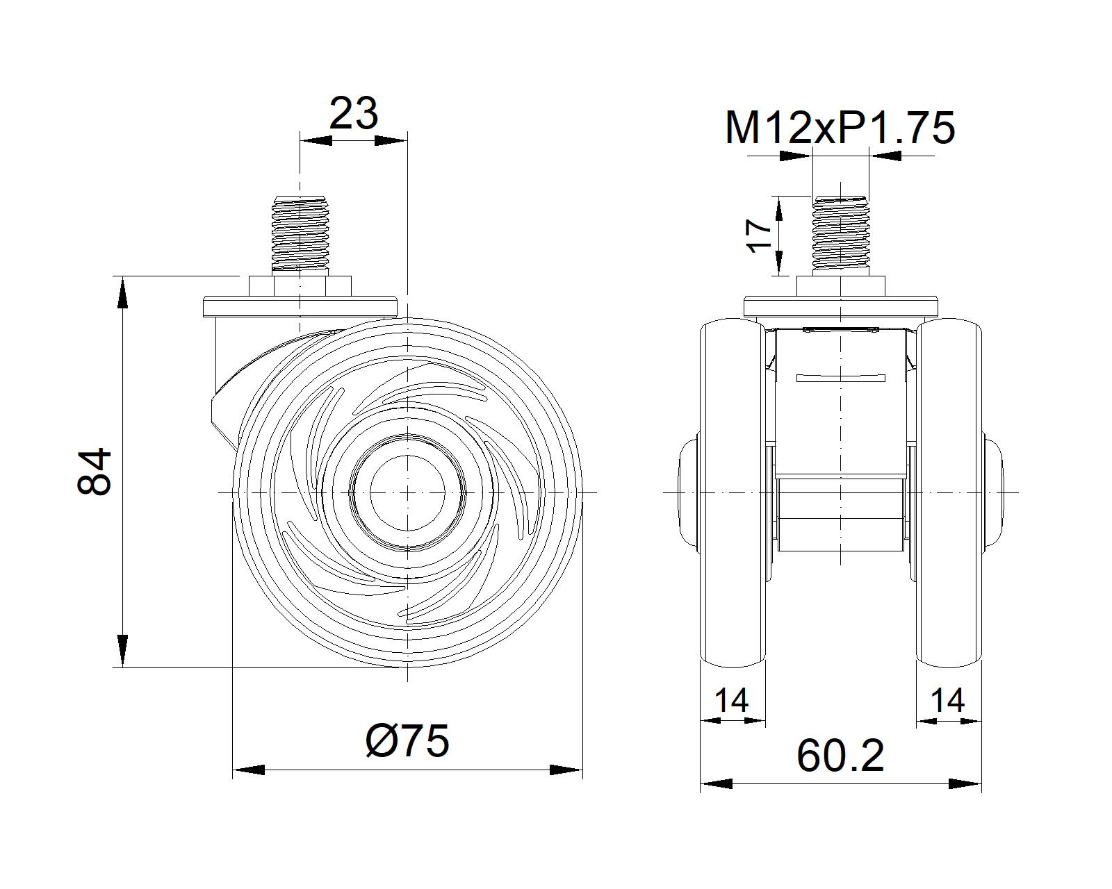 | Resolute Rubber wheel (white dark gray) Wheel Diameter x Wheel Width 75x 14mm |
